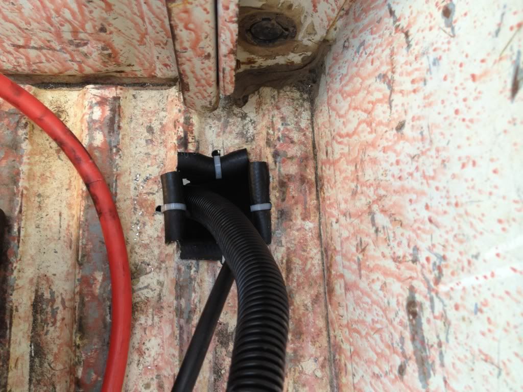 Cut a square hole , cut some cooler line hose in half to protect the cable from sharp edges. Drilled a few hole amd zip tied hose in place.