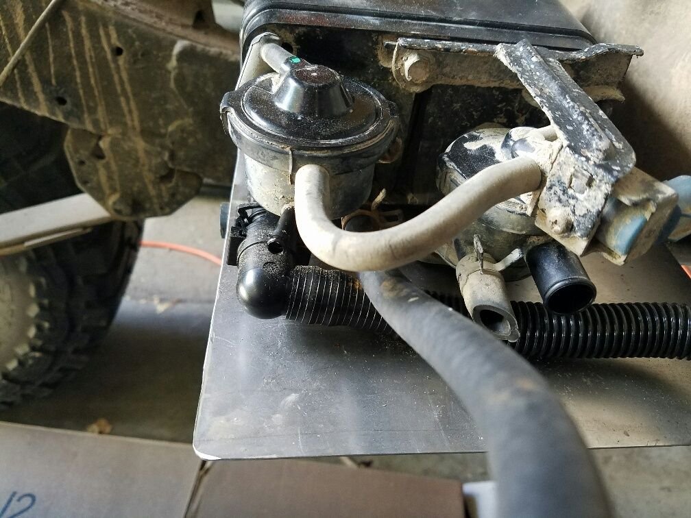 This is the base I made for the Evap Canister, needs to be close to the tank due to that corrugated tube, just need to come up with a way to secure it.