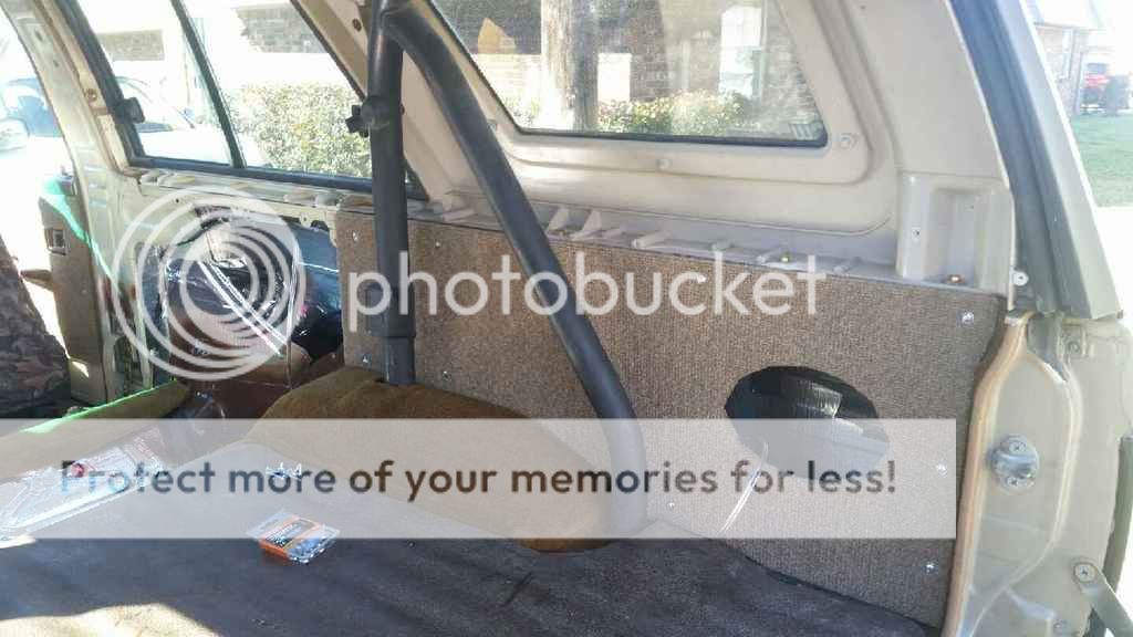 Wanted to put a stereo in it so I could jam on the way to work and on my fishing trips. Ended up making some interior panels that match my doors. Turned out quite good if you ask me. I still need to install the head unit though. Got rid of the El Cheapo rear seat and made the area flat with a piece of plywood. I would still like to find a good rear seat (the fold down kind) and rear seatbelts eventually, but for now, its just me and the wife, no kiddos so I can wait on that.