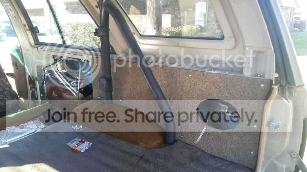 Wanted to put a stereo in it so I could jam on the way to work and on my fishing trips. Ended up making some interior panels that match my doors. Turned out quite good if you ask me. I still need to install the head unit though. Got rid of the El Cheapo rear seat and made the area flat with a piece of plywood. I would still like to find a good rear seat (the fold down kind) and rear seatbelts eventually, but for now, its just me and the wife, no kiddos so I can wait on that.