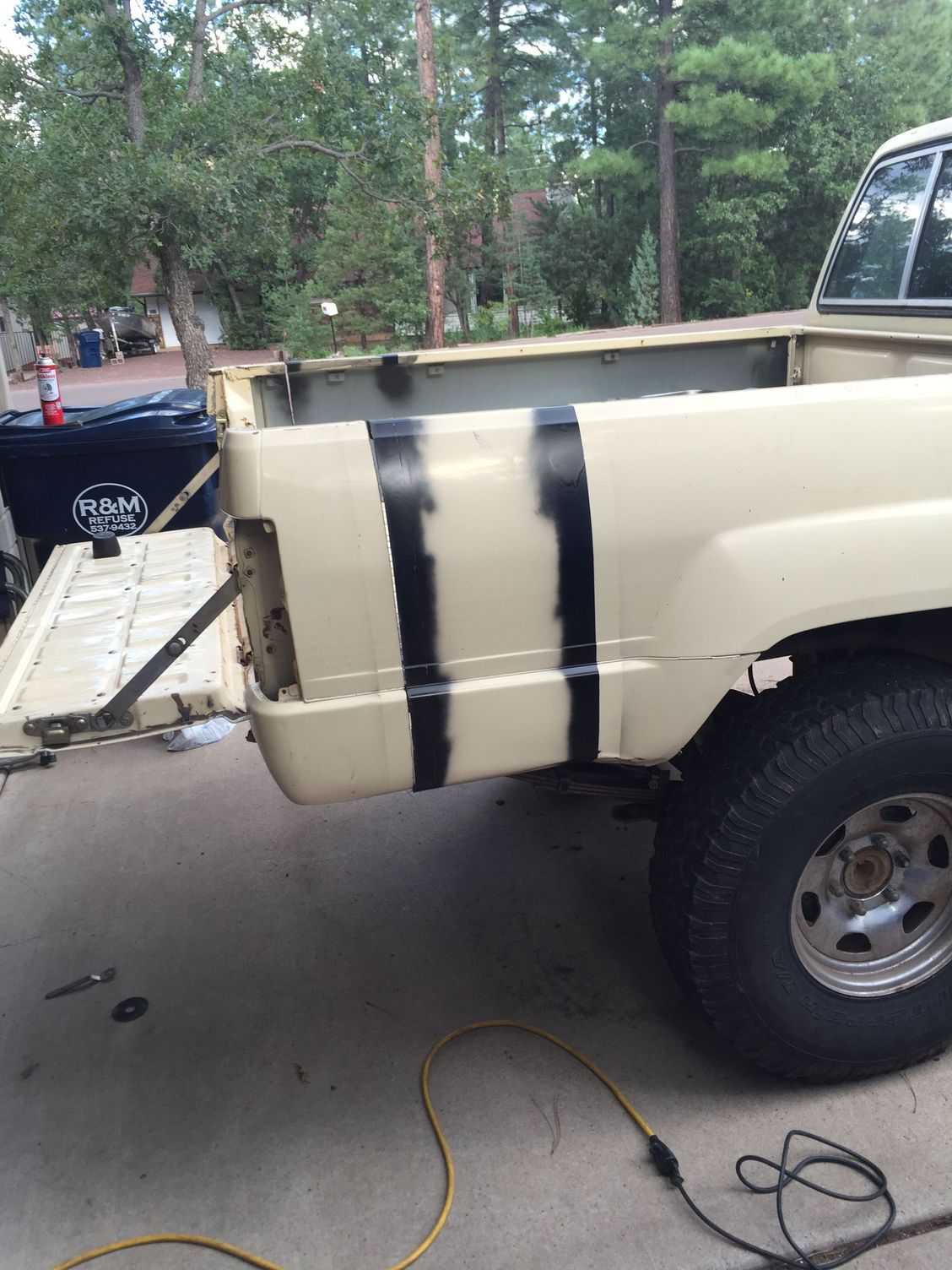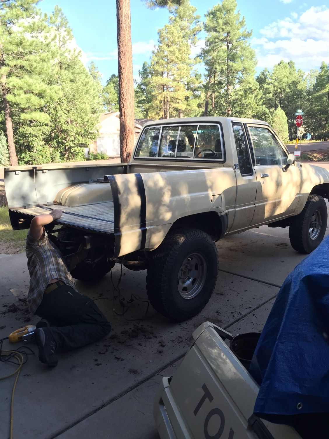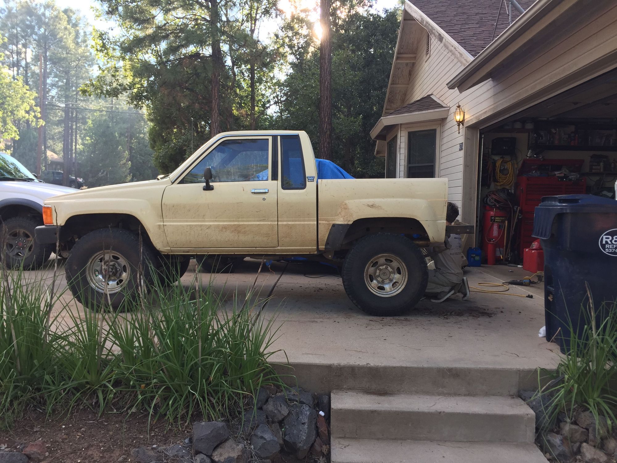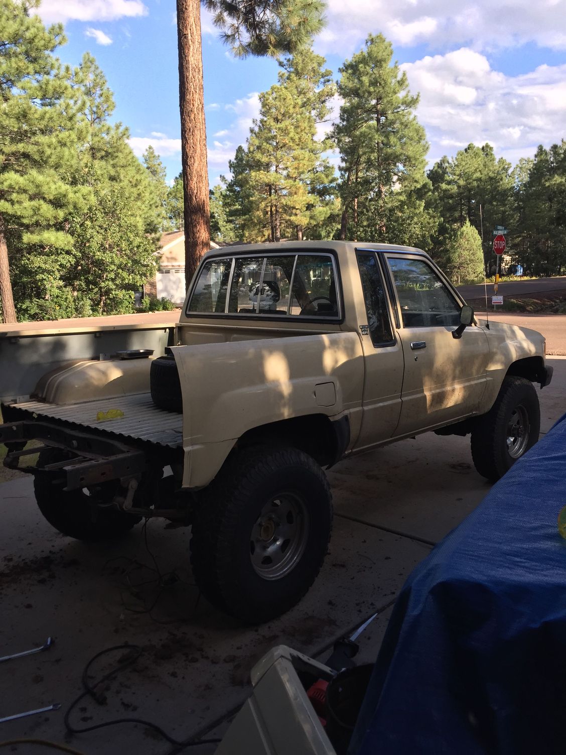 New wheels look good on there, I really like the looks of the stubby bed! How much did you have to cut out to make it fit? RUF springs and high steer are going to make a big difference!