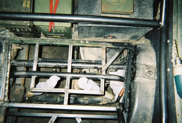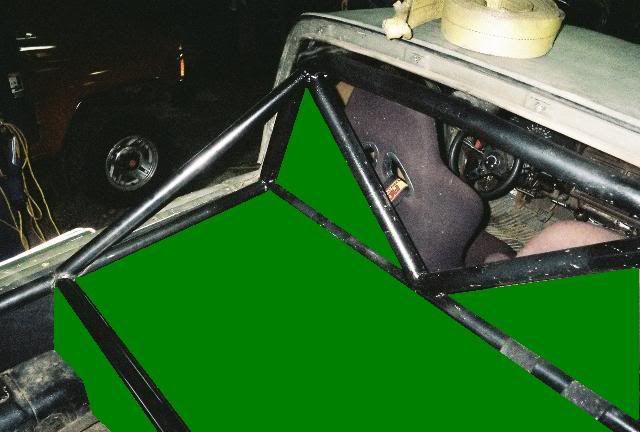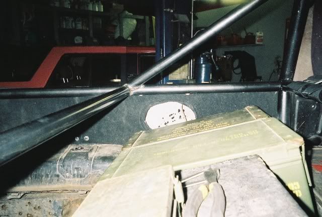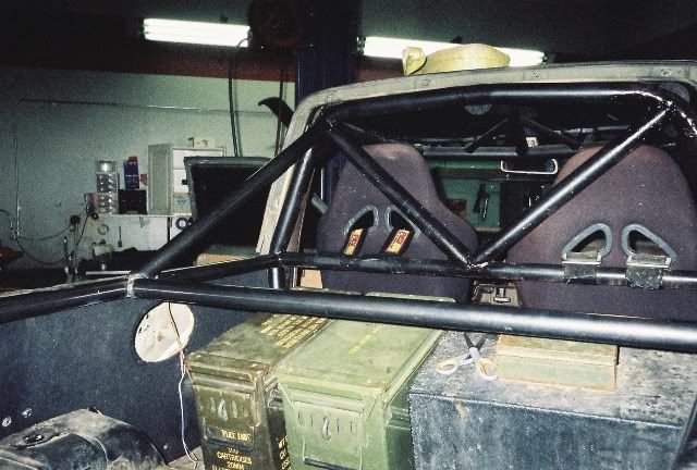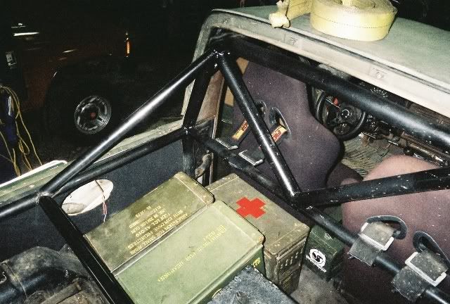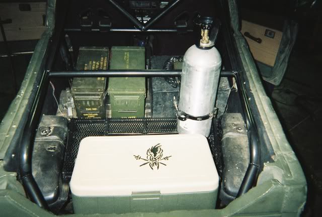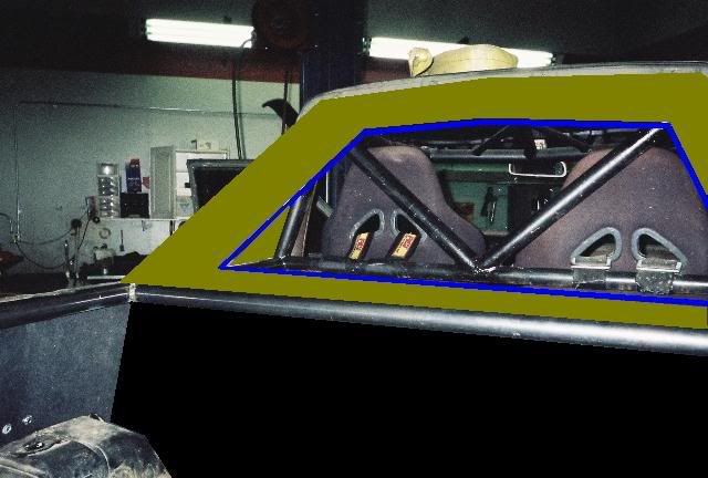 Since I don't have a tow rig and I love snow wheeling, I've been trying to find a way to enclose the cab when needed. Here is the idea I have, it's part of the reason I built the cage the way I did. All of the panels will attach by tabs on the cage. The large open area in the middle will be plexiglass, while the area's behind the seats will be sheetmetal. The large section on top of the Ammo boxes will open up to get items under it.