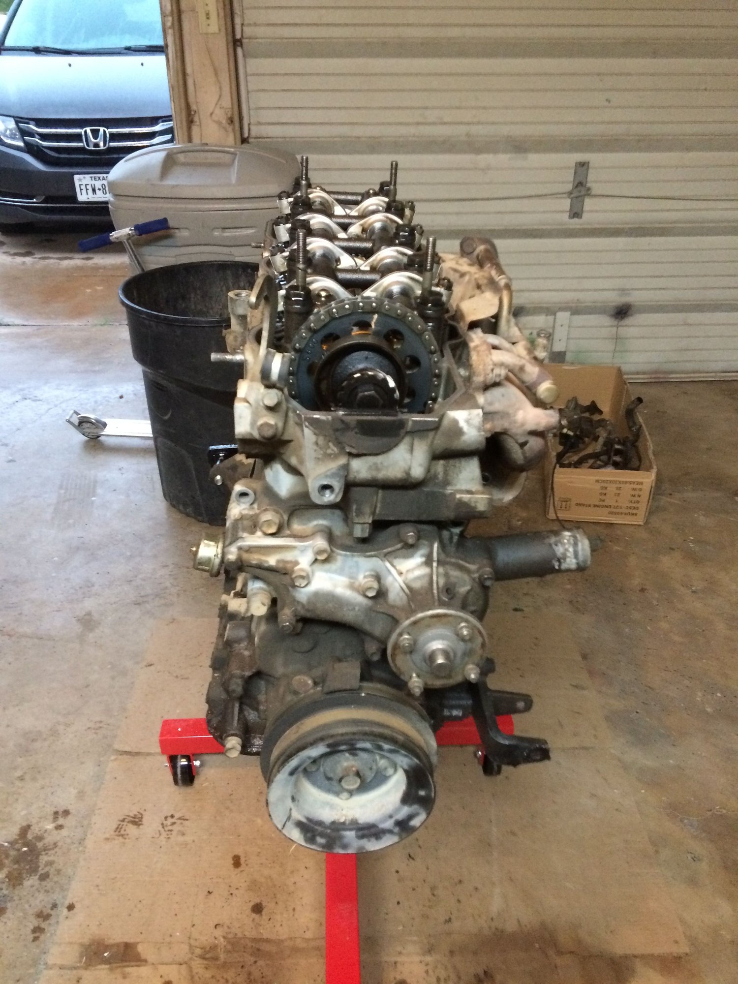 you can see my cardboard box that I will fill with all of the egr and smog equipment... that stuff will definately not be going back on the engine... going forward, if anyone needs any of this stuff, just let me know.