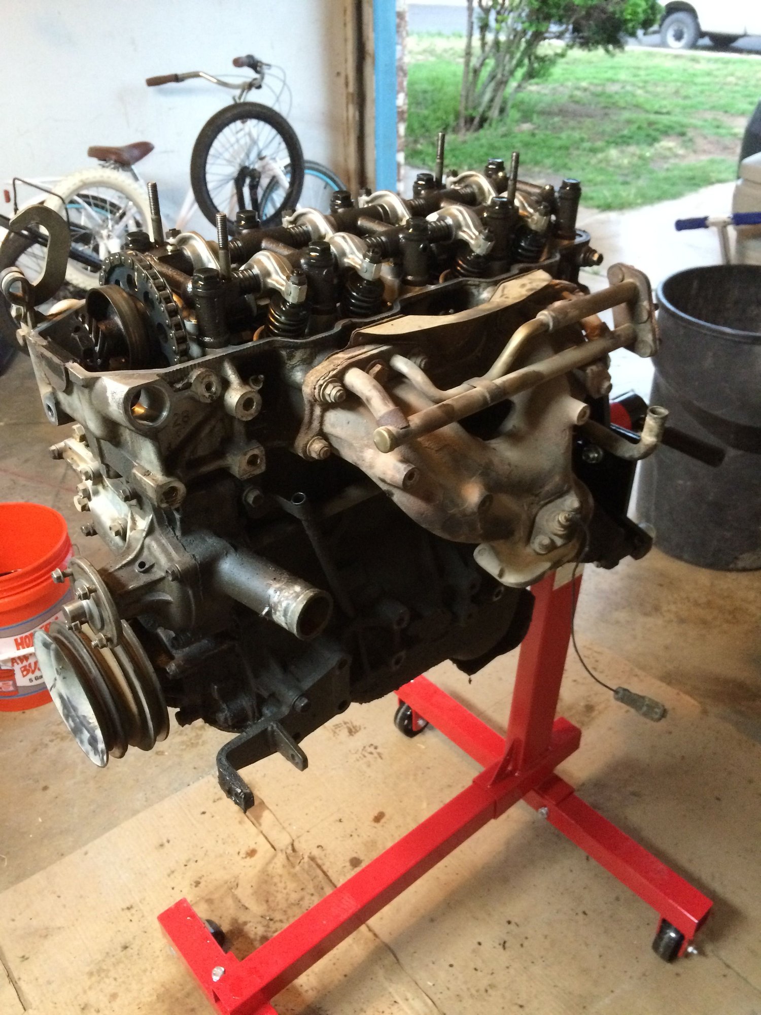 So I put the engine on a harbor freight engine stand, went a bought a box of 1 gallon sized, heavy duty GLAD Ziploc freezer bags (the cheap ones are not strong enough)... and now its time to disassemble, bag and tag!