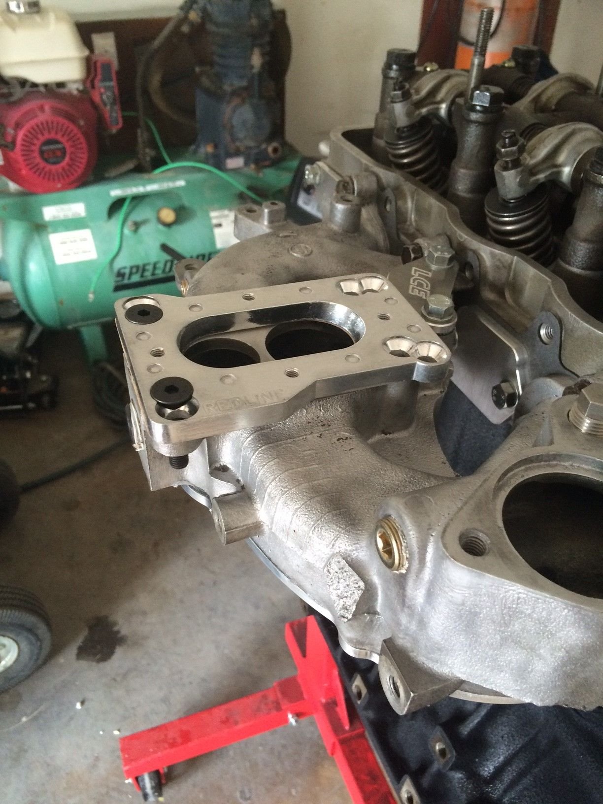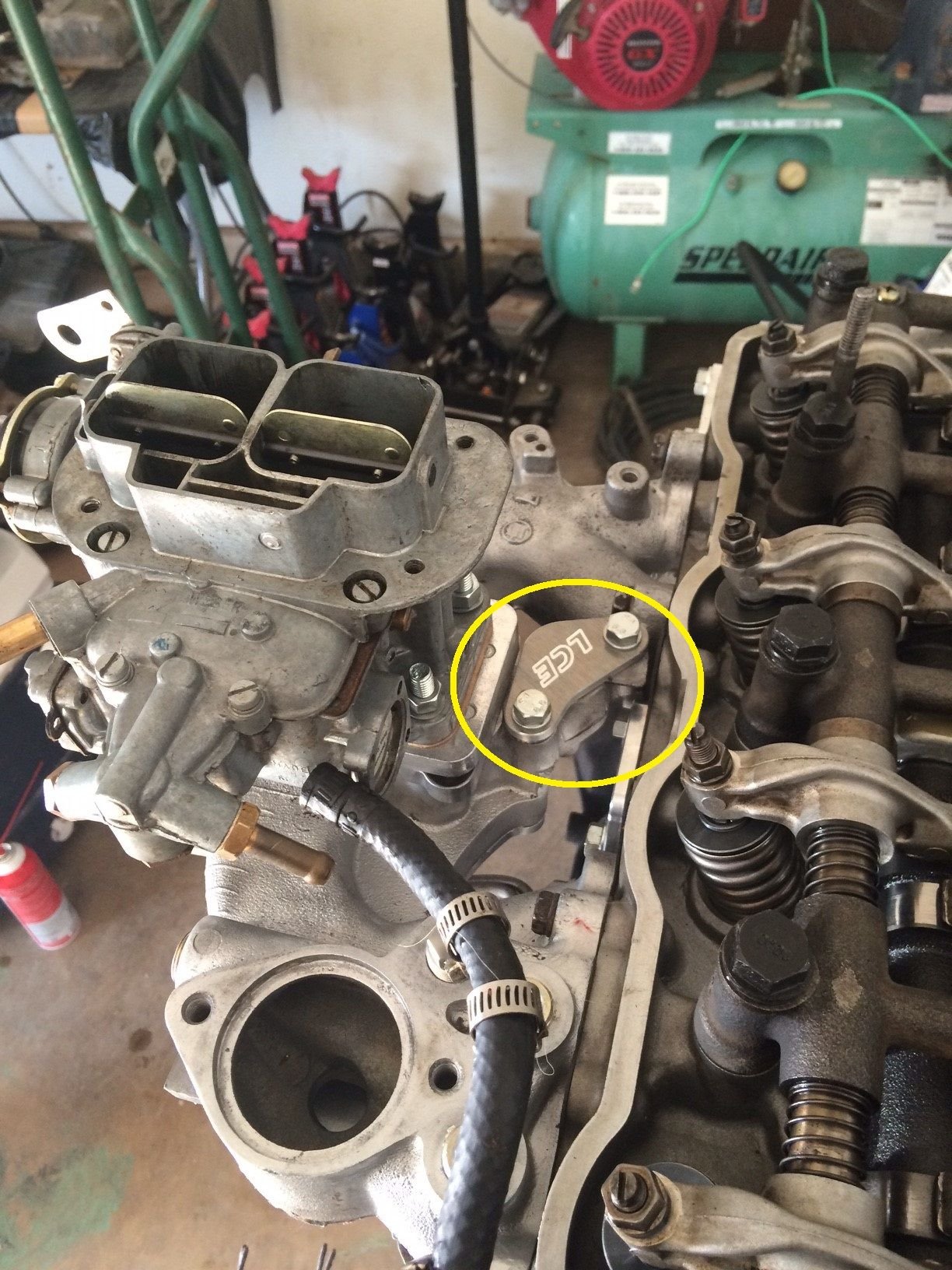 so yesterday I was able to get some more done. I installed the LC Engineering kit to block off emissions, complete with 11 bolt water plate. Also installed the intake manifold, weber carb (32/26 DGAV) and fuel pump.