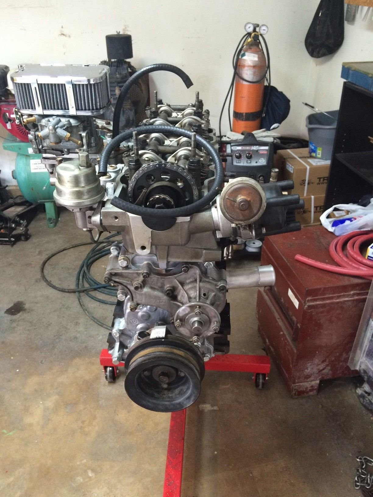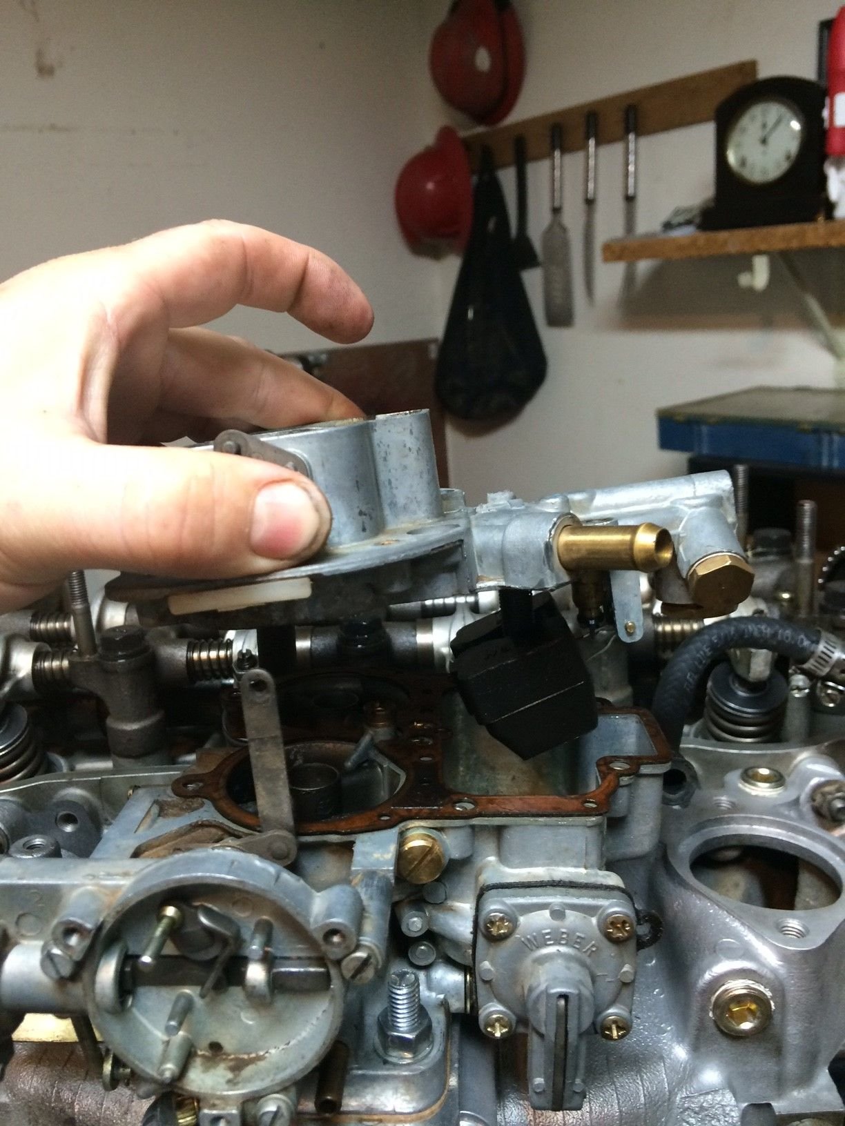 So during this build (re-build) I have seen multiple signs that I am not the first person to open this baby up since 1983. For one, almost all of the bolts that held on the front cover were the wrong size, which was a total PITA (someone obviously replaced the timing chain) and another thing I noticed is that someone installed a weber 32/36 which is a nice treat ... after a bunch of elbow grease and a couple cans of carb cleaner I am finding that the carb is in really good condition.