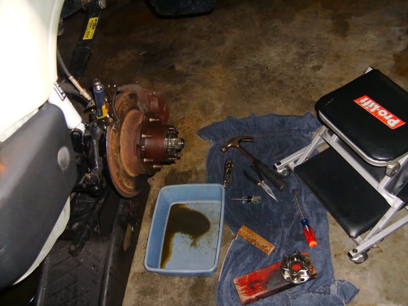 Replacing break pads, rebuilding calipers, regressing bearings and hub assembly