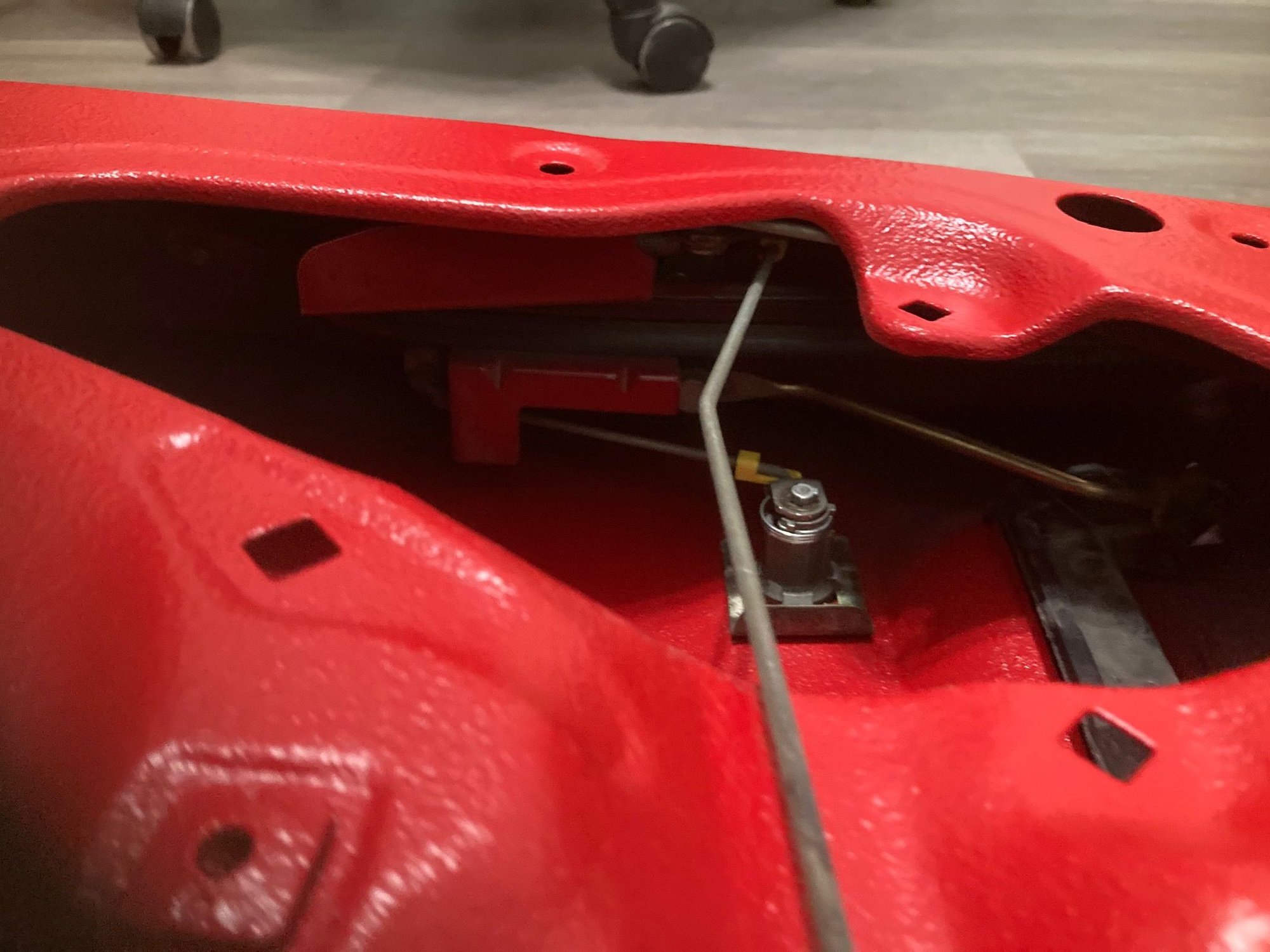Ok, The triangle piece in the front of the door should be attached to the rubber that goes inside the door channel and the other end is metal and sticks down inside the door and has a bolt that attaches it. On the rear of the door there where the rubber reenters the lower door there is a frame piece (see pic above) The piece goes inside the door and is right in front of the door lock assembly and the rubber goes inside that bracket or frame piece. That piece is what keeps the window from shifting out of position. Note: If you don't have all the rubber in the channel it's not going to work.