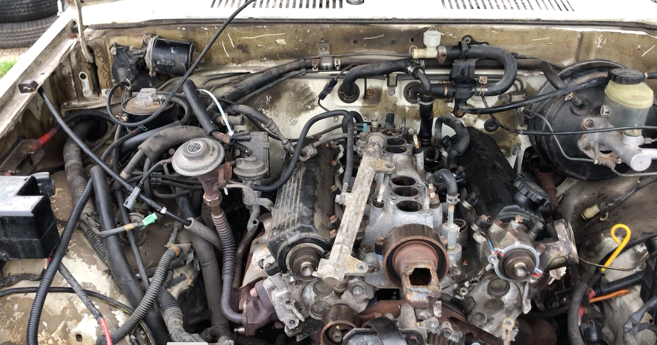 By the way, all the grunge you see in the engine compartment, is Fluid Film, a rust preventative that the original owner sprayed on the painted surfaces. I am not going to be taking this 4runner on the road in winter ever again, so I will clean that up at some point in the process. Repainting it will have to wait until I lift the body off to install a new frame. Not that the current frame is failing, yet, but every one of theses frames that has been exposed to salt is a ticking time bomb, rotting from the inside out.