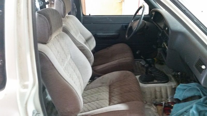 Also while I was picking up a 4 runner door for a buddy I made an impulse buy and bought a set of SR5 buckets! They are tan but nothing a seat cover cannot fix. They are worlds more comfortable than the crappy bench seats that were in there. 100 bucks for the pair which i thought was a pretty fair deal and I liked the fact that they should be a direct replacement.