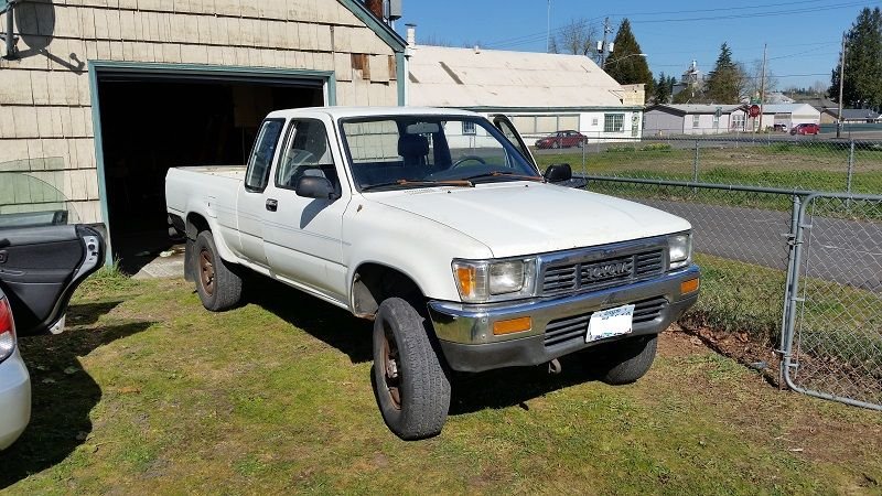I have always admired yotatech and the rigs people build. Being the dreamer I am I have always wanted to build a nice toyota but funding always seemed to be the limiting factor. Now that I have graduated college and got a real job I can afford to finally by a toy. Now if you are looking for an extreme off road build this is not the right thread for you because my goal is to build a capable off road machine but still be able to daily drive it if I want. After playing the waiting game for the right truck to come along (which took a while because they are like gold up here in the Pacific Northwest) this is the "gem" I found. 1990 toyota extra cab, 22re, 5 speed, 4x4, 220k for 1200 bucks. The day I got it home