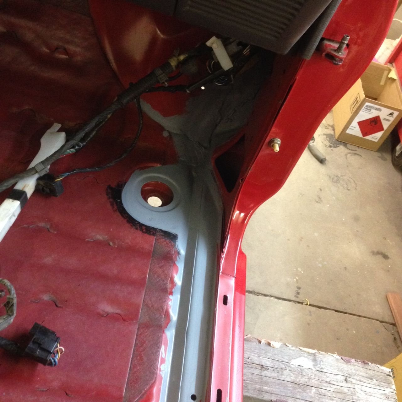 inside of my floor where I patched things up, and for some areas where the rust was not severe yet but the paint definitely needed to be replaced I used a brush to put this stuff on. I know it is supposed to be applied with a gun, but I did not want to have to worry about masking the inside of the truck and getting over spray and what not. I'm not sure if brushing it on will be a problem or not, It might have been too thick to dry properly but it will be a good experiment and I will have a better idea of if it works next time.