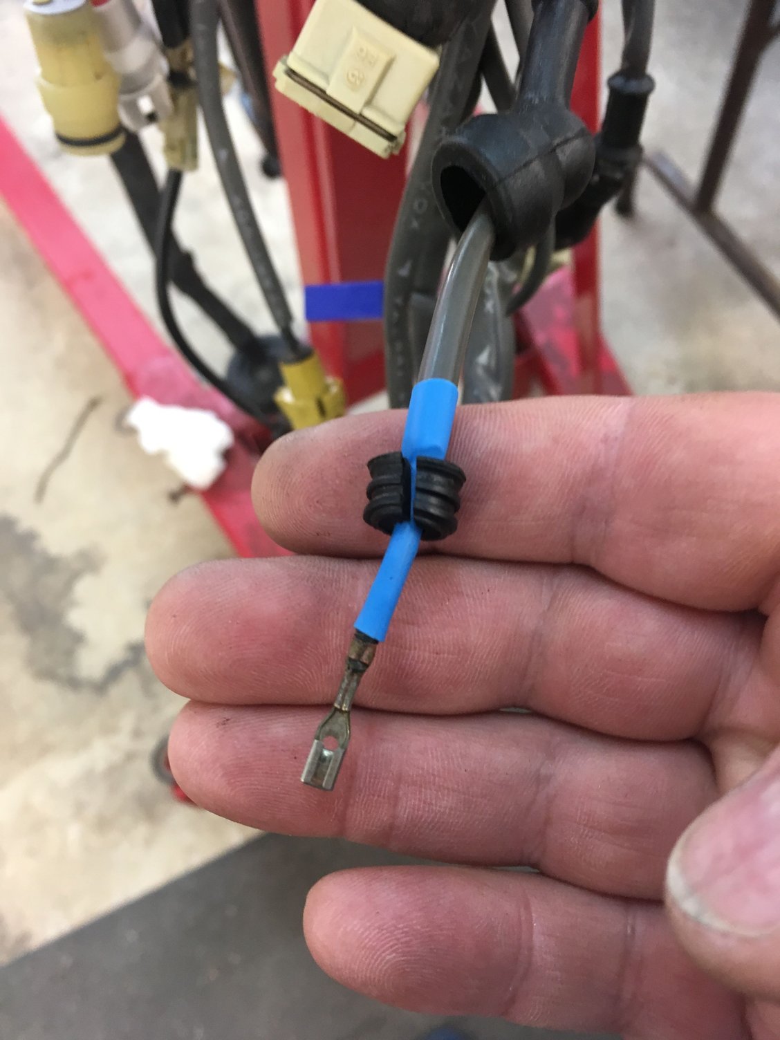 New 90 deg boot and shrink insulation placed on wire. Wire resoldered.