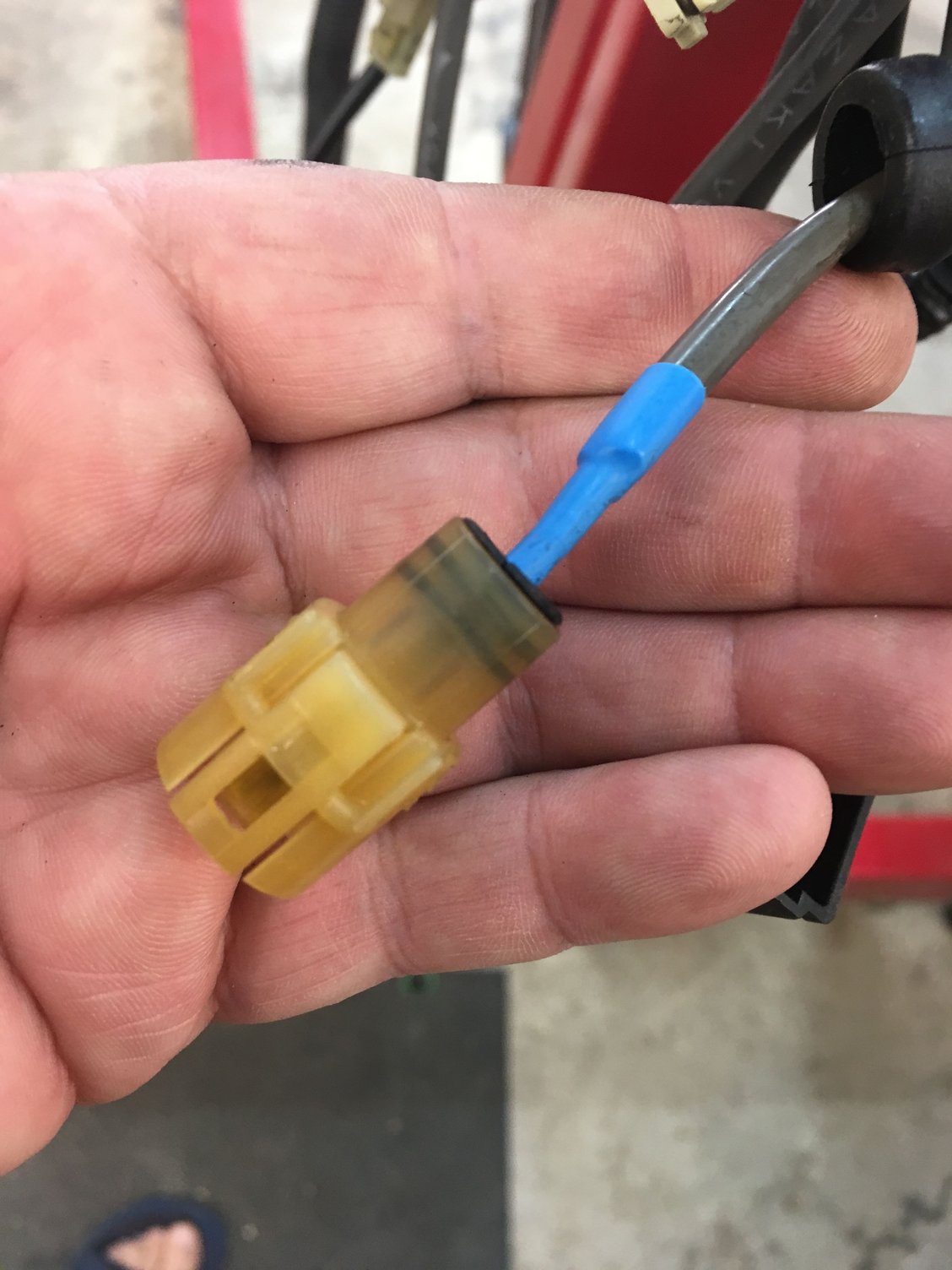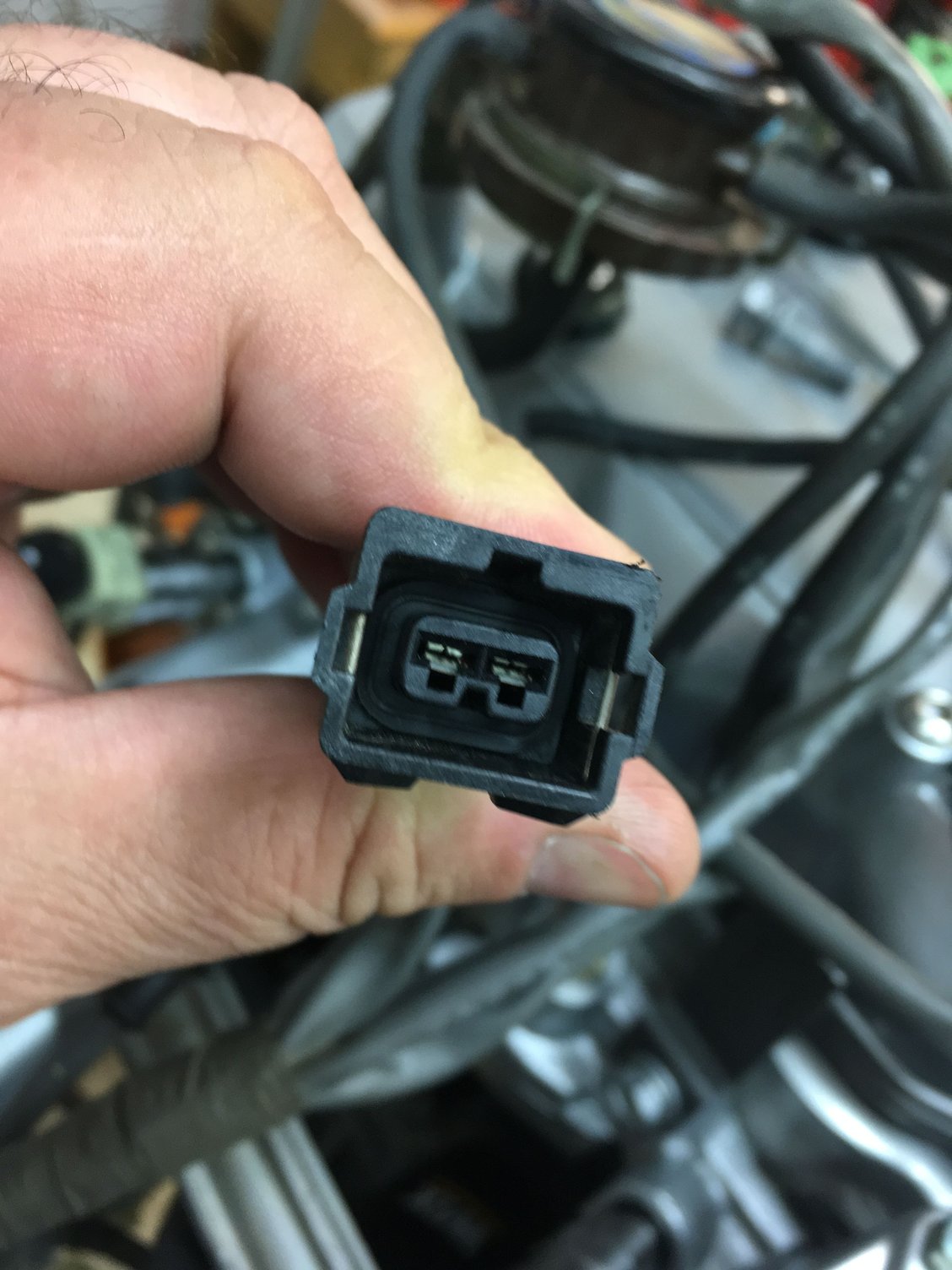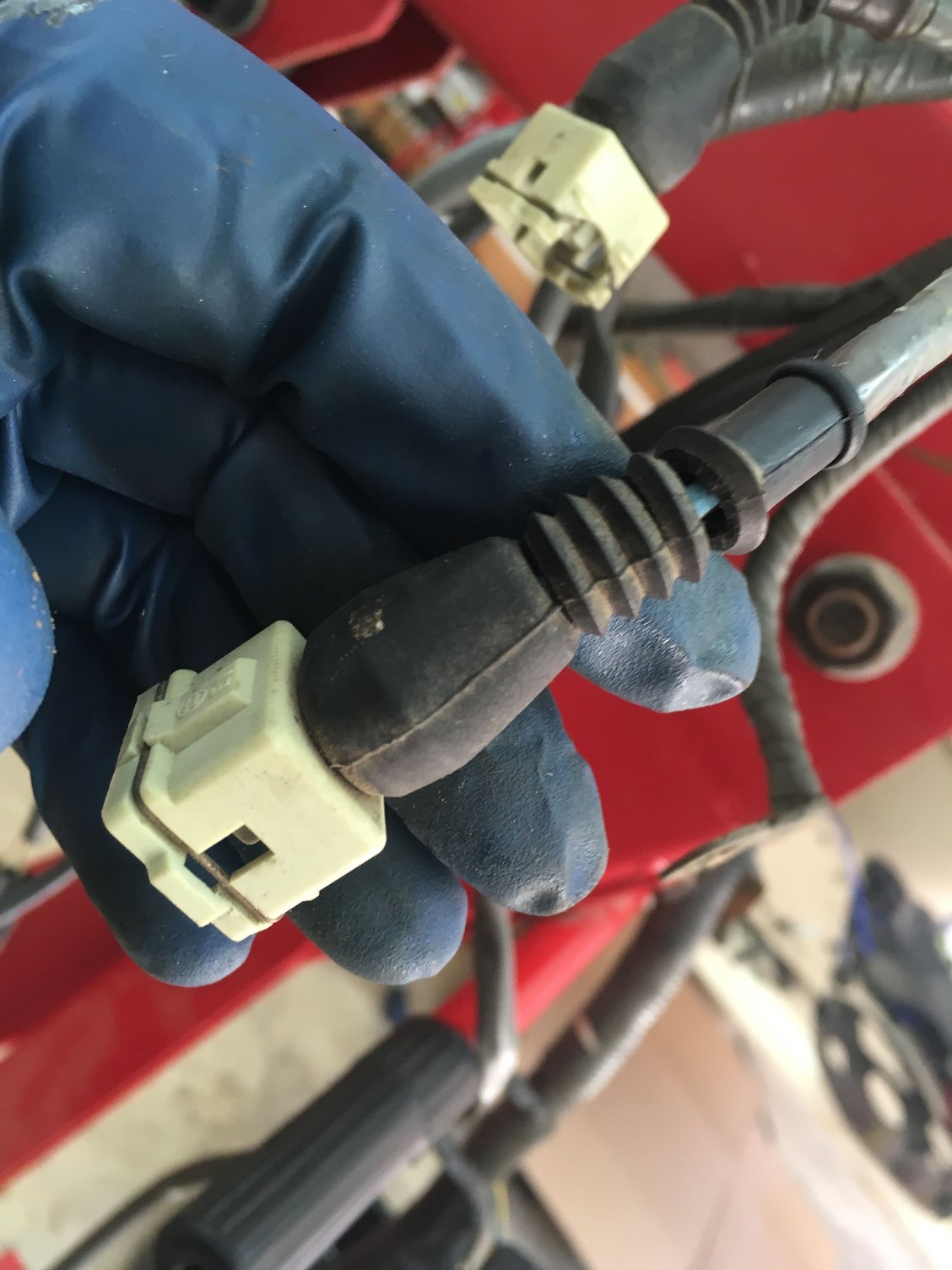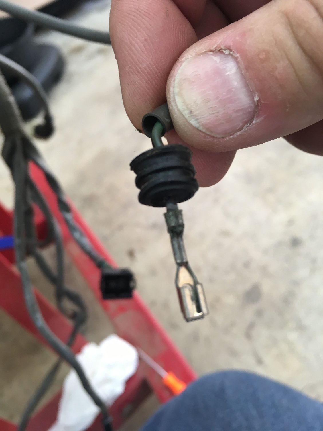 Single wire from sensor (idle up?) on top of thermostat housing nearly broken.