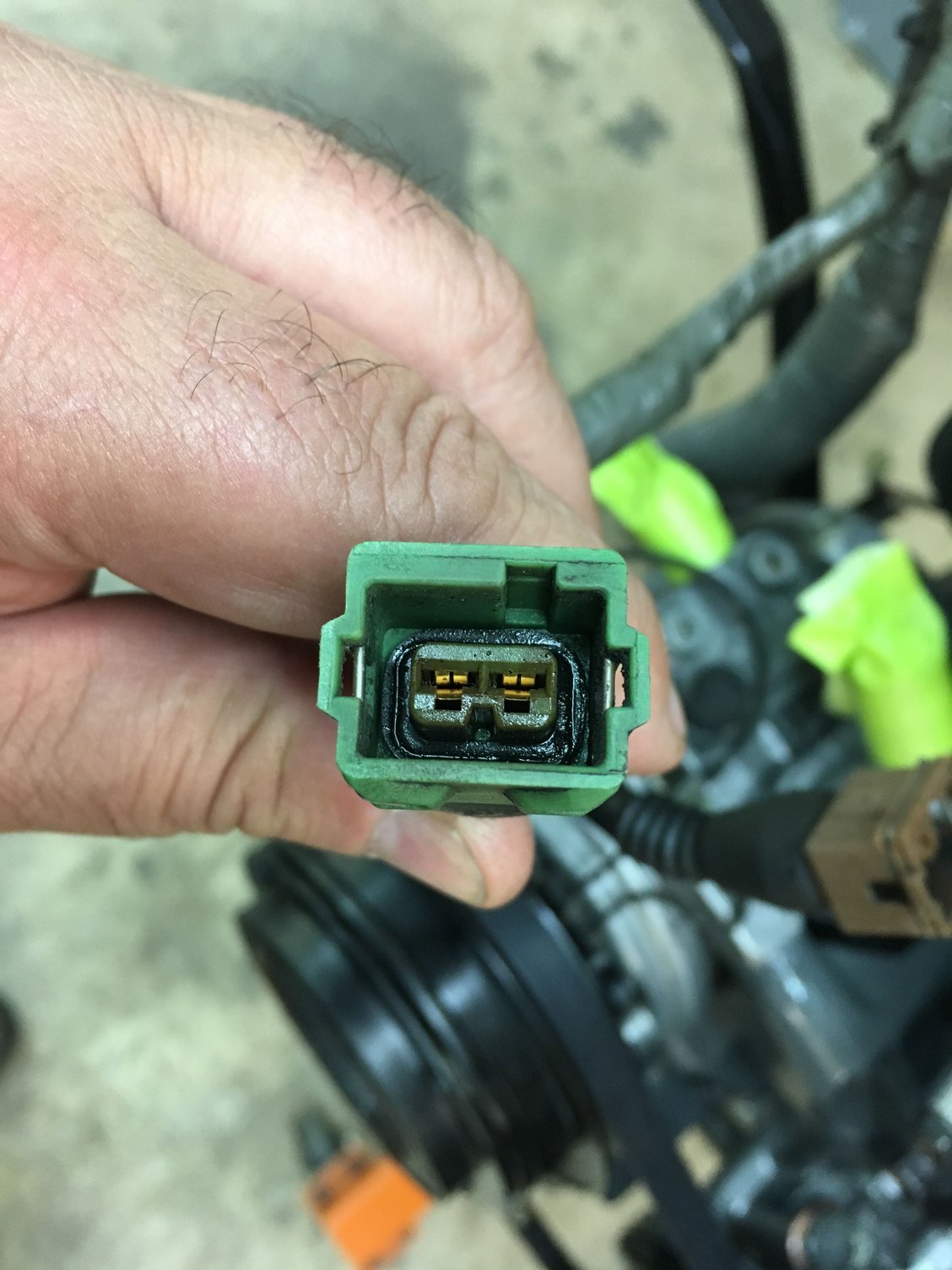 Green ECU connector has an offset lug. I could not find the Standard replacement for this connector.