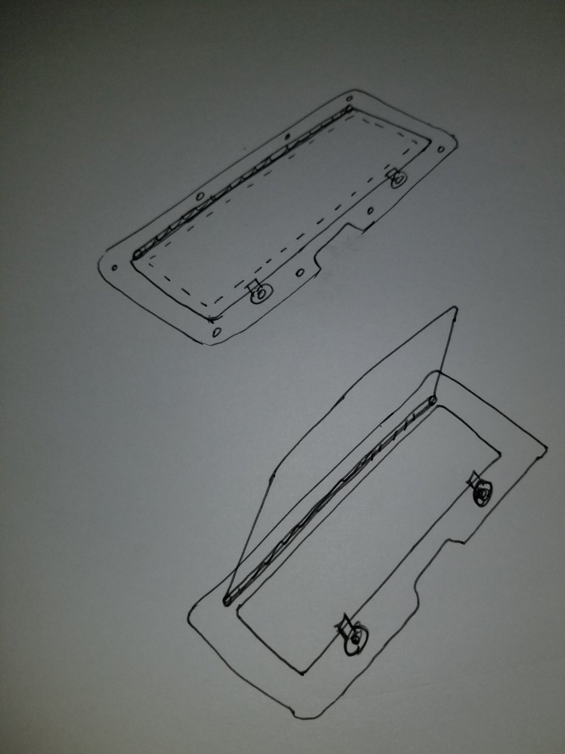 Not entirely sure yet cory, something along the lines of what rusted posted in your build thread and this quick drawing I did. Thinking about doing a frame and then an overlapping door that closes over top of it, some foam gasket between the frame and door to eliminate rattle, a couple small latches to hold it shut. Thoughts?