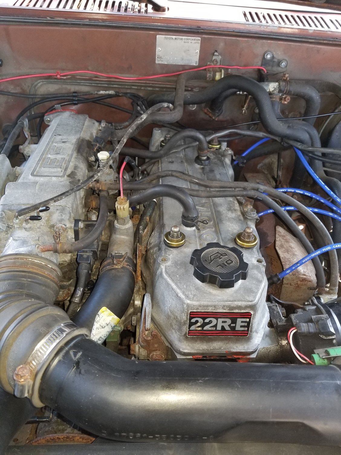 Removed rear window motor and regulators to convert space to storage. Glad to see it out of there! Finalized my hinge placement and how much I needed to shim it out to achieve the seal I want. Will update the rear window replacement thread with more info soon. Did my EGR delete, will need to find shorter bolts for the two going into the side of the block, had to shim with washers. I am convinced my EGR was non functioning, with the increased throttle response and smoother running at cruise I am getting now. Removed A/C idle up VSV and capped vac ports, as I will be removing all factory A/C components soon. Also did my Valve cover gasket and half moon grommets, as I had a slight leak from doing my valve clearances awhile ago. Gotta say, taking the valve cover off without the mess of vac lines is stupid easy now.. not that was all that hard before, but wow.. could do it with my eyes closed now! Gave the cover a quick clean too, doesn't look as terrible now! And late last night got one new battery terminal on!
