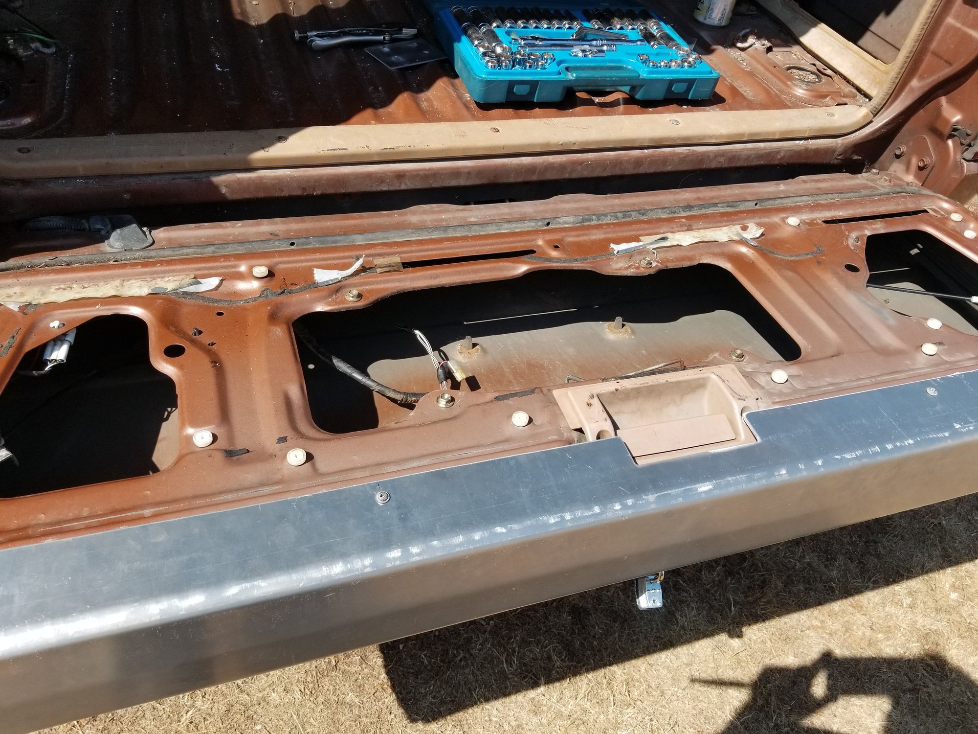 What are you thinking for covering tailgate to access your storage? I've gutted mine but I just put the factory cover back on until I figure out what to do. I need a cap on my window channel too like yours.