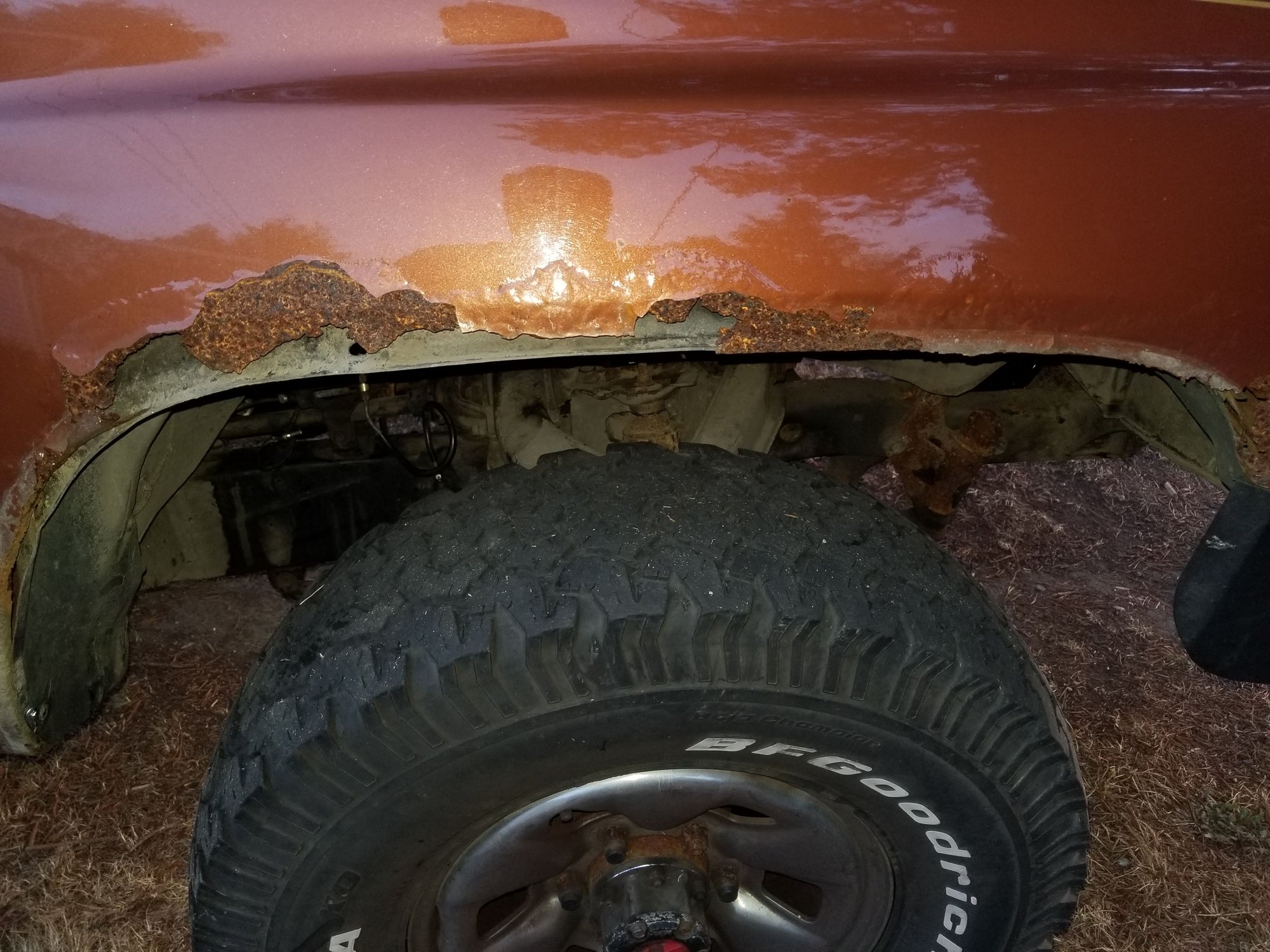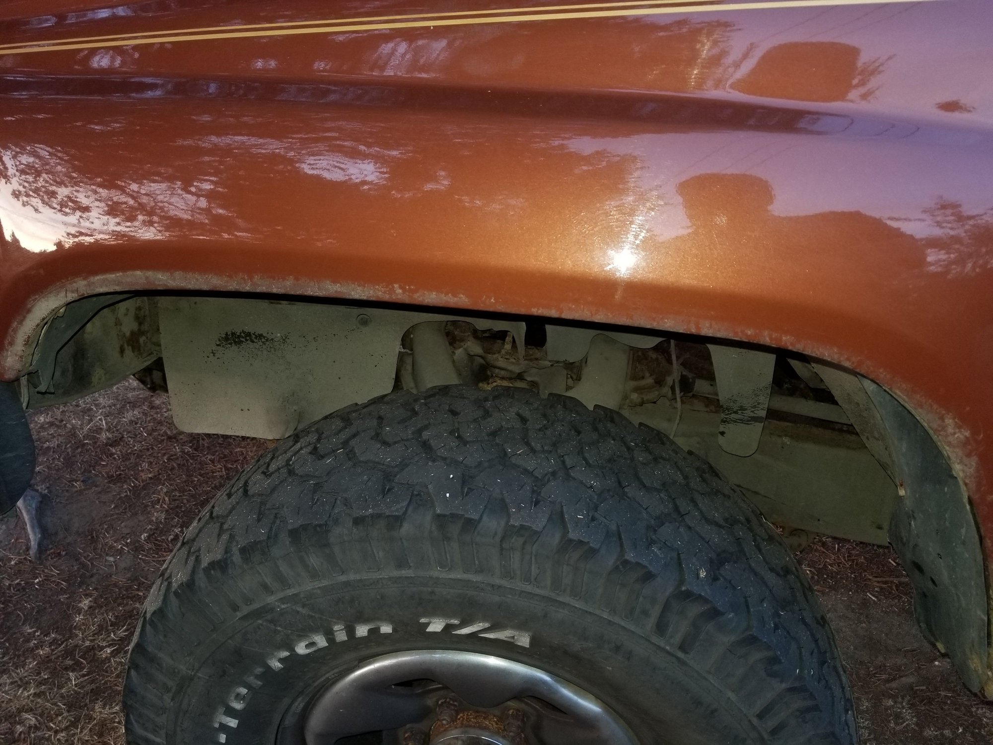 Started removing my chrome fender trim to assess rust damage and come up with a game plan. Originally planned to cut rust out from passenger fender and then cut the drivers to match it, but there is no way in hell I'm cutting up that perfect looking driver side fender! Will be looking at replacing the passenger fender instead, then colour matching.
