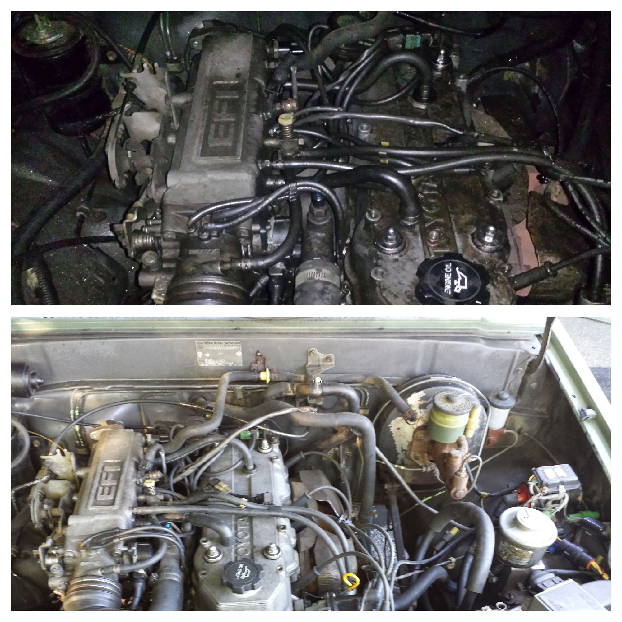 worked a deal with the owner, dropped it off at my house the next day. oil was everywhere. odometer had 327,000 on it the 22re wasnt all that bad. but it showed the milage. so about a month goes by, i redid everything. passed smog flying colors. here it is the day I seen it an a few after pics