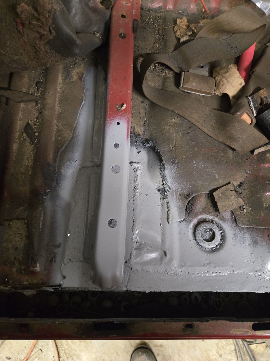 The floor where the seat mounts is pretty rotted so I cut out the bad and scabbed in some new material.