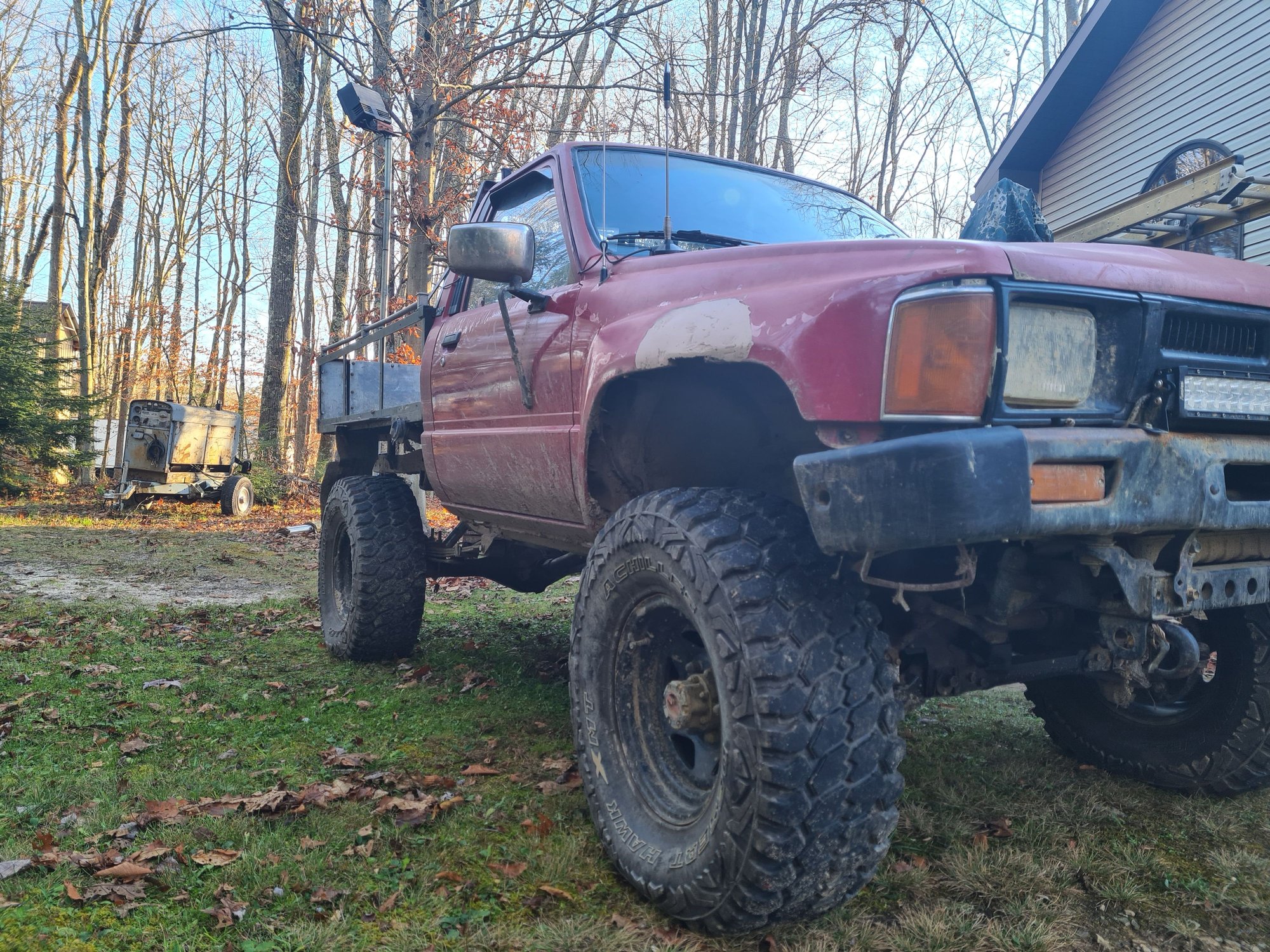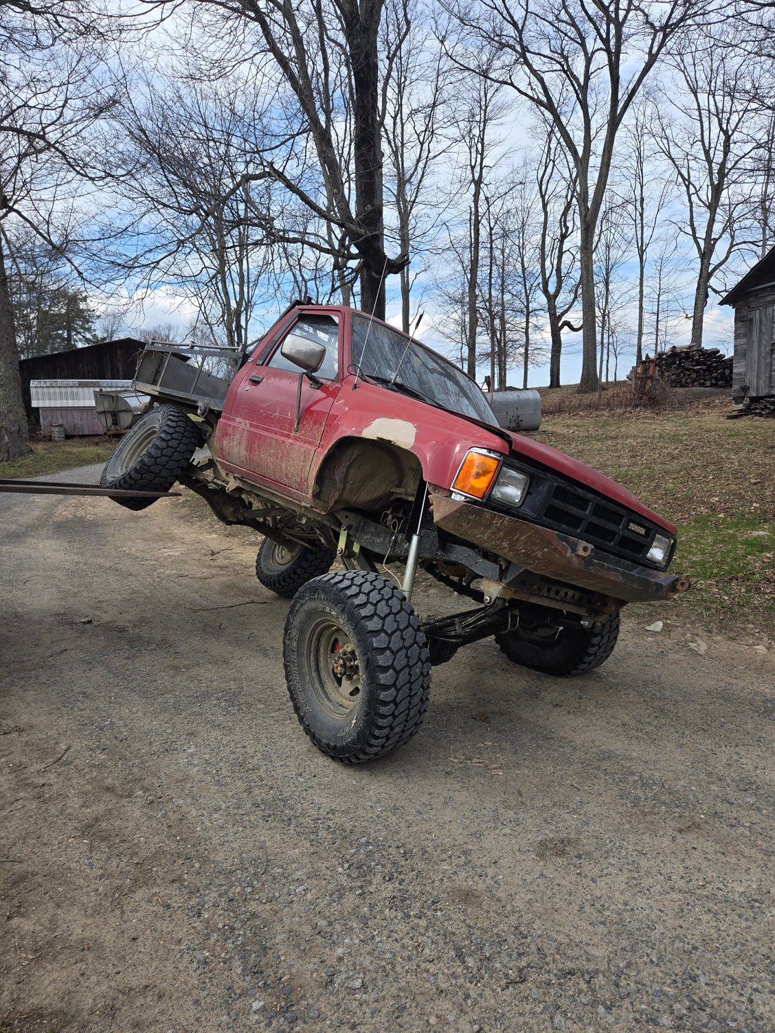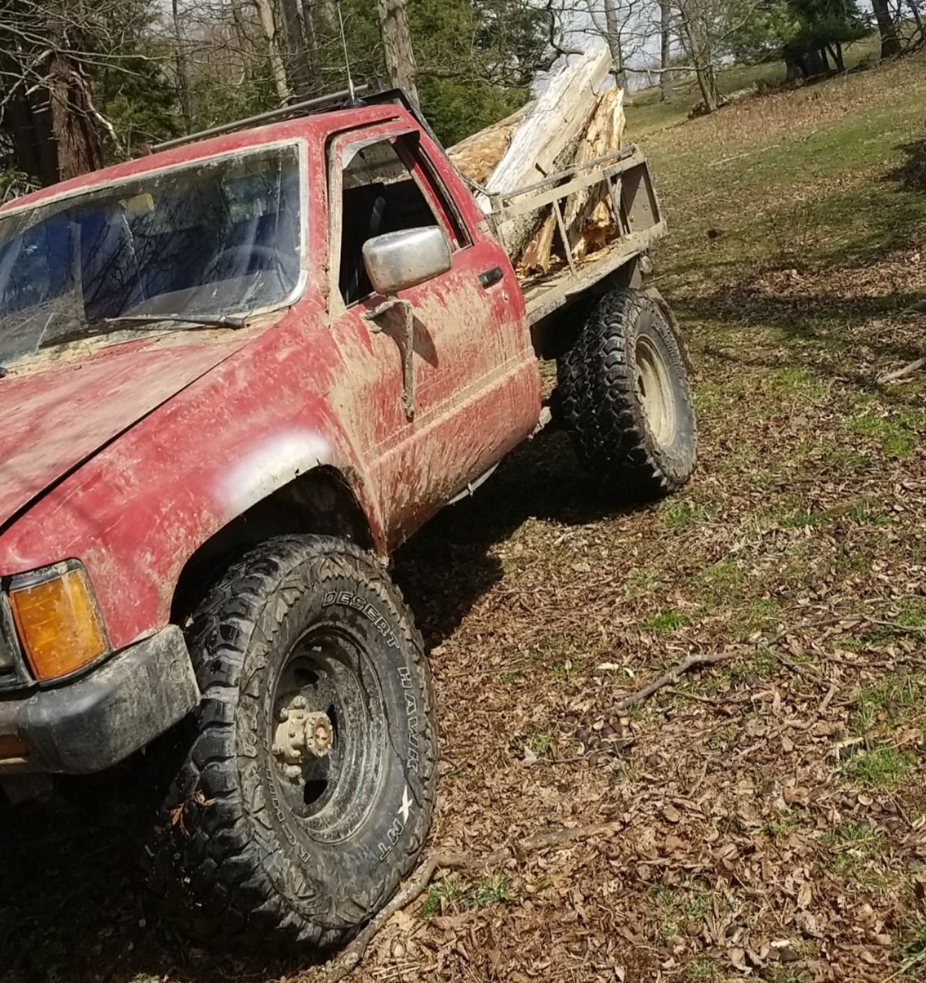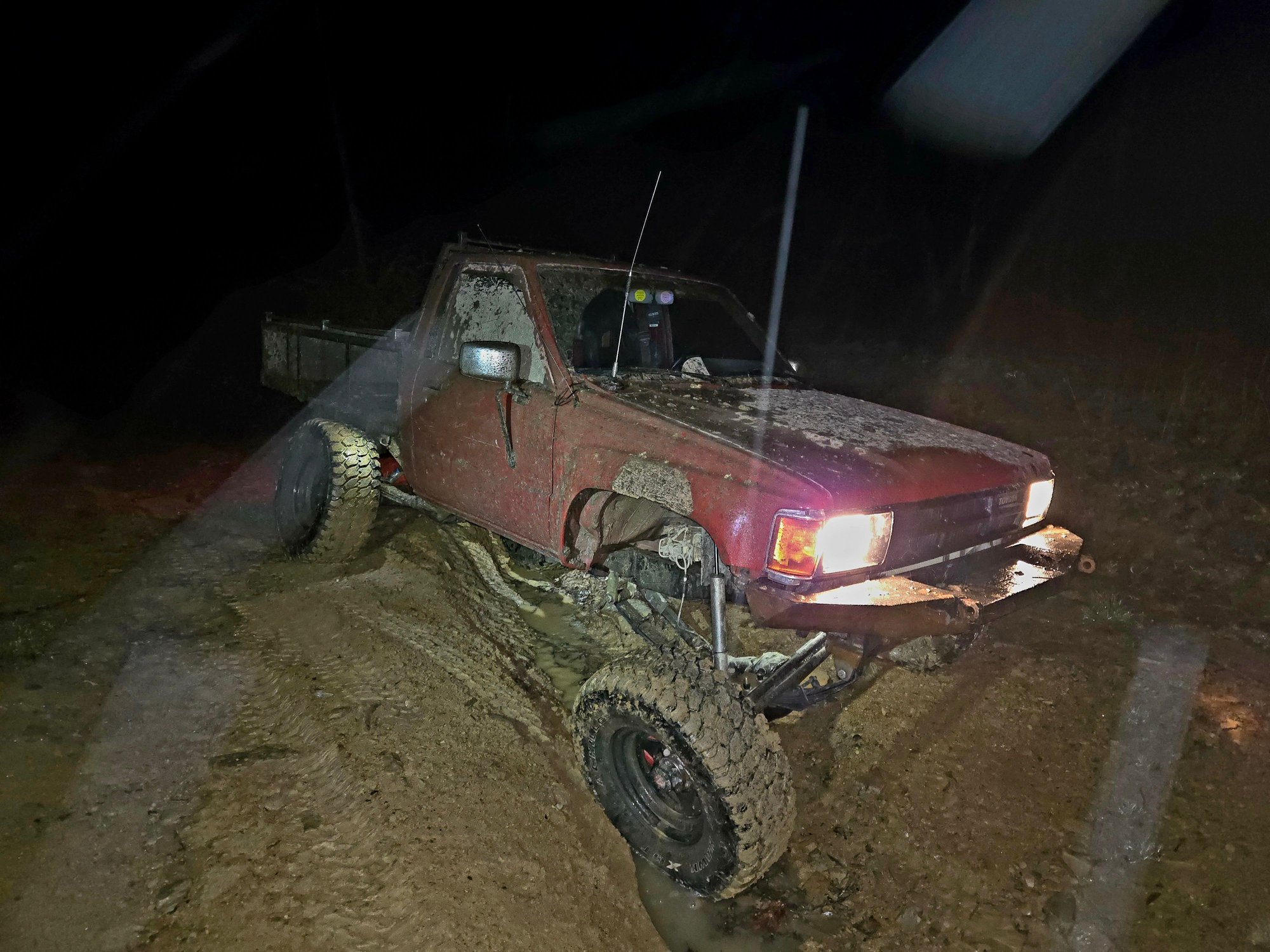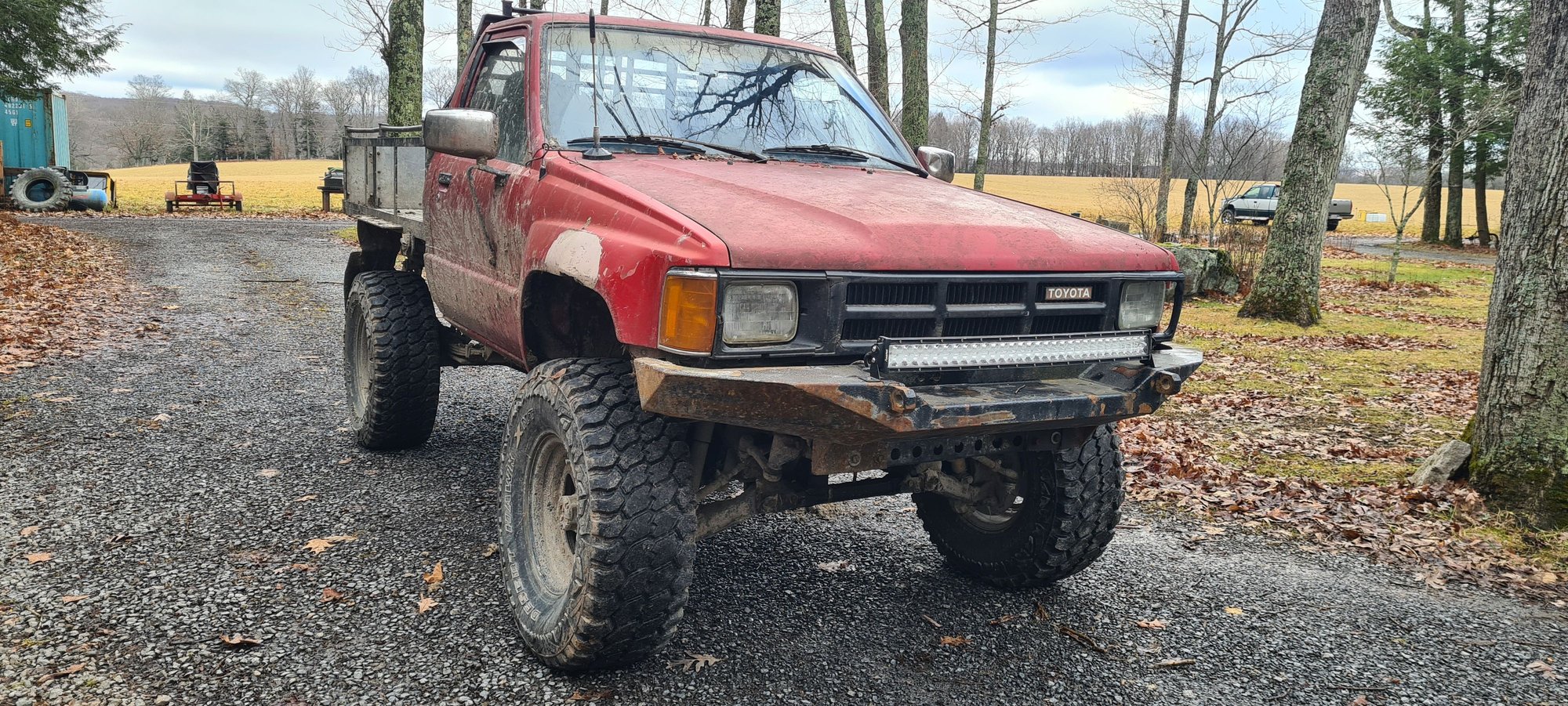 Future plans include getting a 4-runner electronic locking diff, new or cutting the rot out of the front fenders, getting a heavier front bumper, and potentially swapping over to a 22-re, although my 22r runs flawlessly after a little tune up. Doesn't look too bad wet. How it sits now, needs new fenders and a bumper.