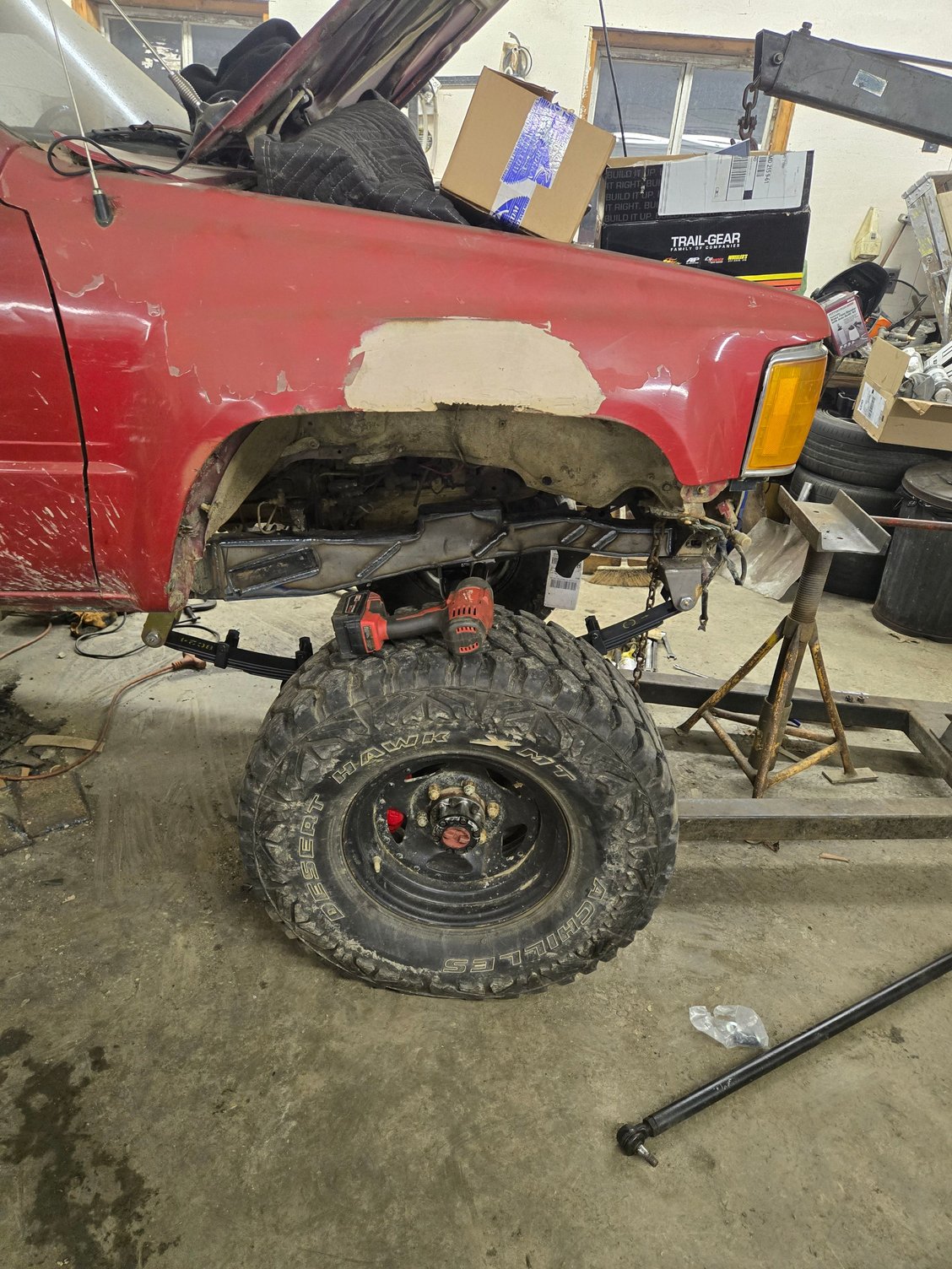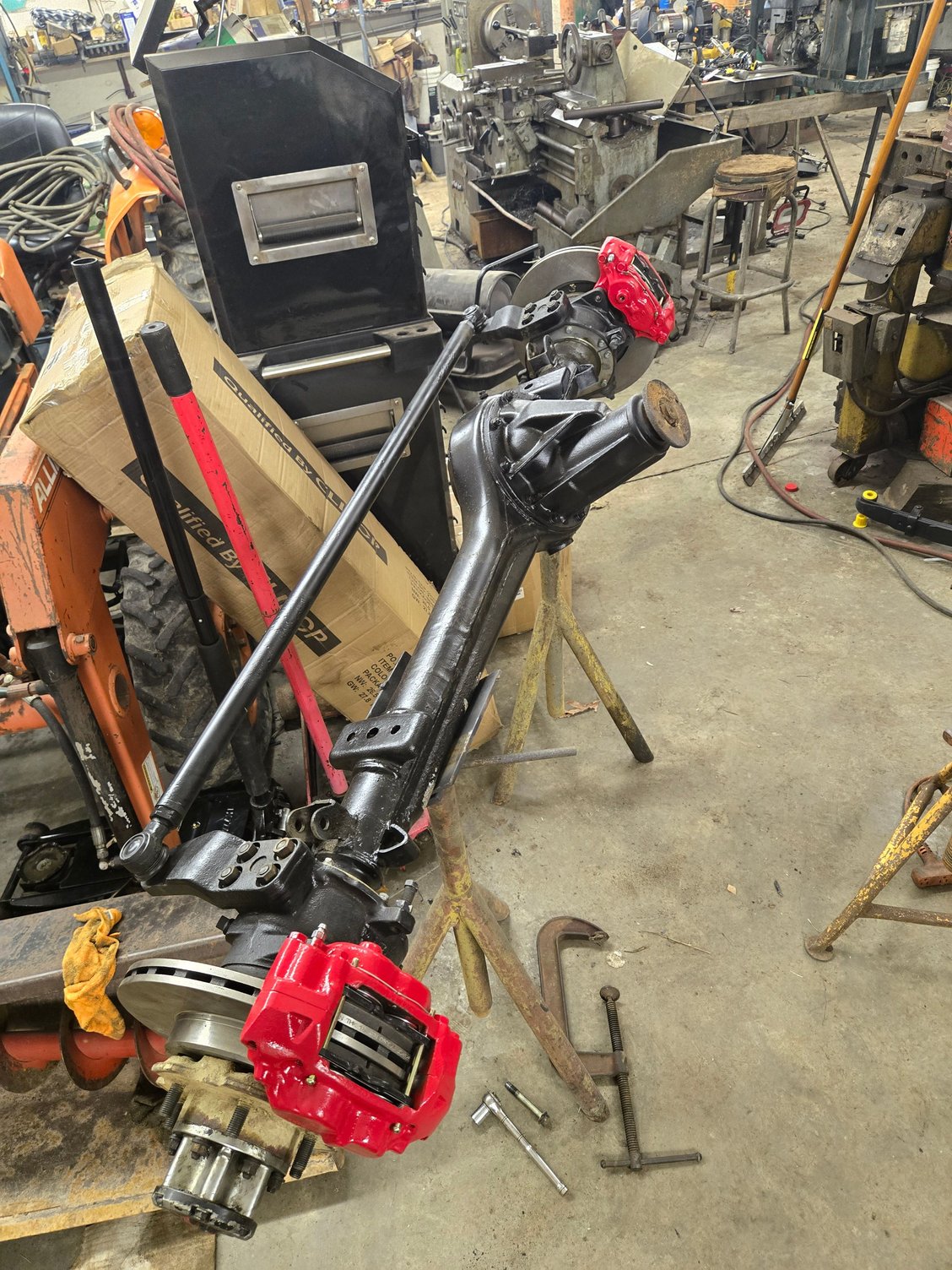 At this point I decided the next step was to mock up the axle under the truck, before that I went ahead and rebuilt the front axle and do the IFS hub/brake swap. I also installed the trail gear knuckle wipers and all new seals / bearings and shimmed up the knuckles for the hi-steer.