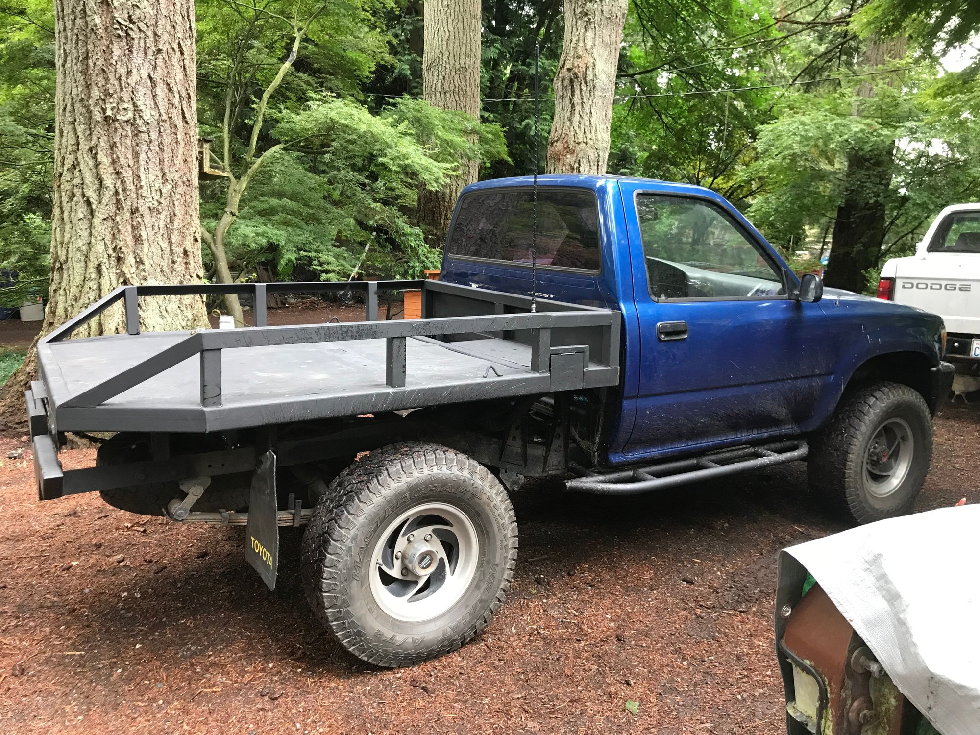 I got a different buddy who was looking for a clean 3rd gen bed, so we worked out a deal. He extended the flatbed for me, and I gave him the original. We also put some TG rock sliders on.