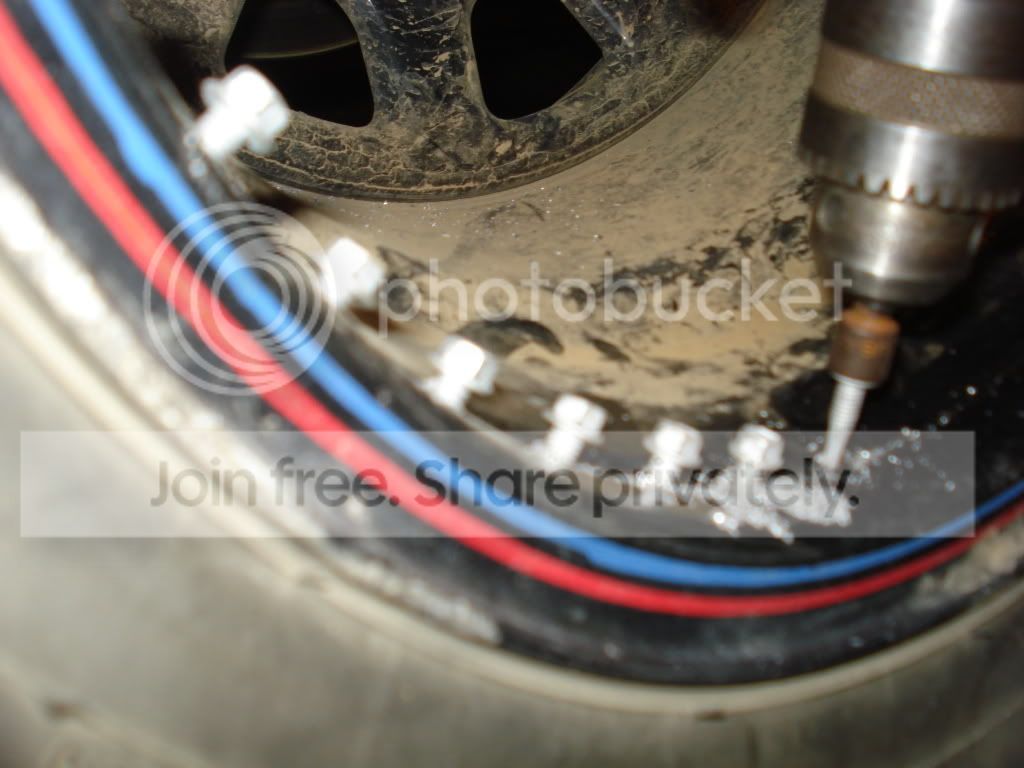 You might choose to do this and add right stuff to the screw before you attempt to drive them into the wheel, but the metal shavings stick to it, we found it better to start the screw and leave 1/2" room so we could apply right stuff before torquing down the screws.