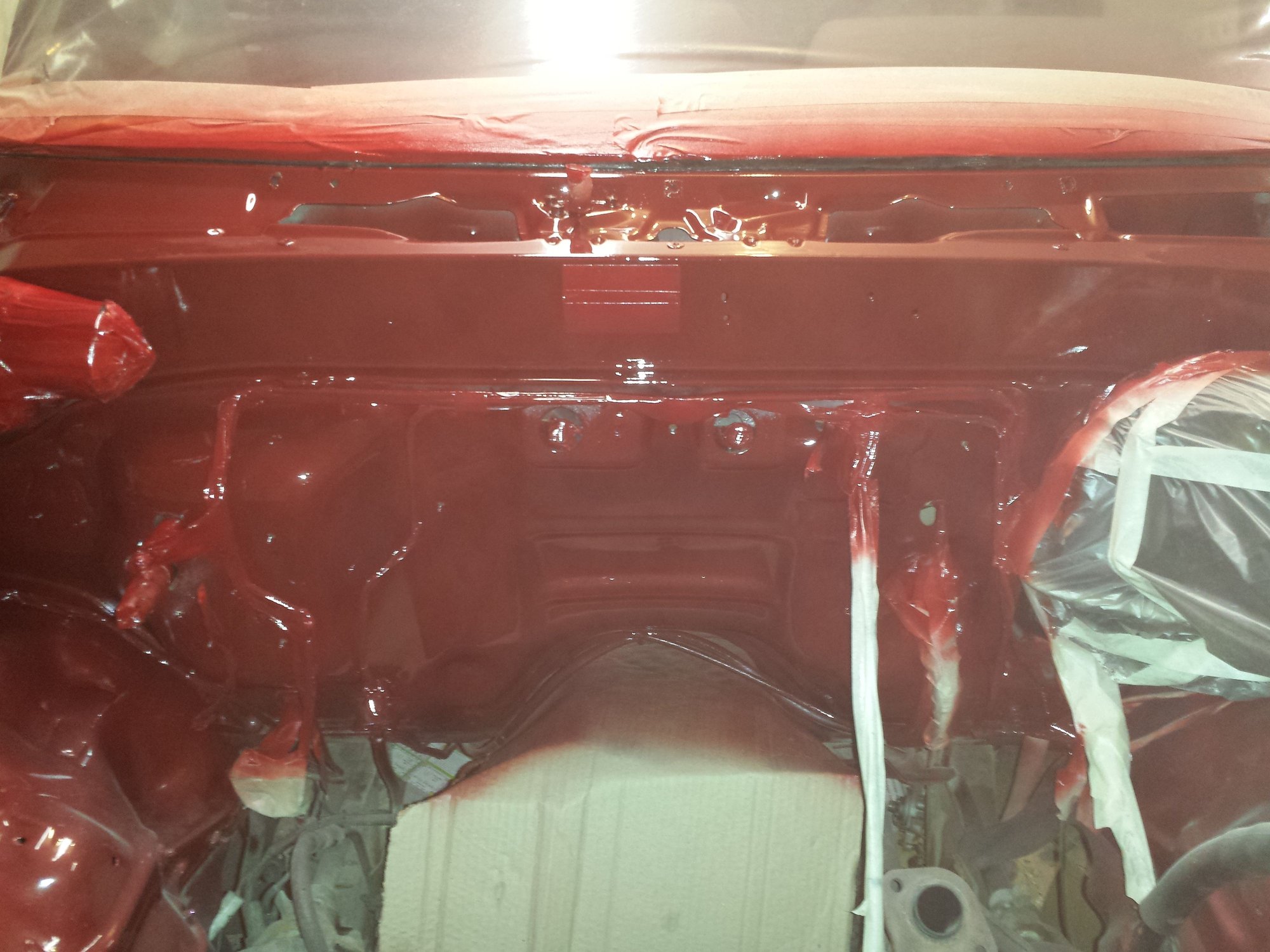 And i painted the firewall so i can start putting the engine back in. Maybe I'll get it bolted back in next weekend. The first picture without flash the second is with flash. The second is fuzzy from the paint fumes/particles still floating around.