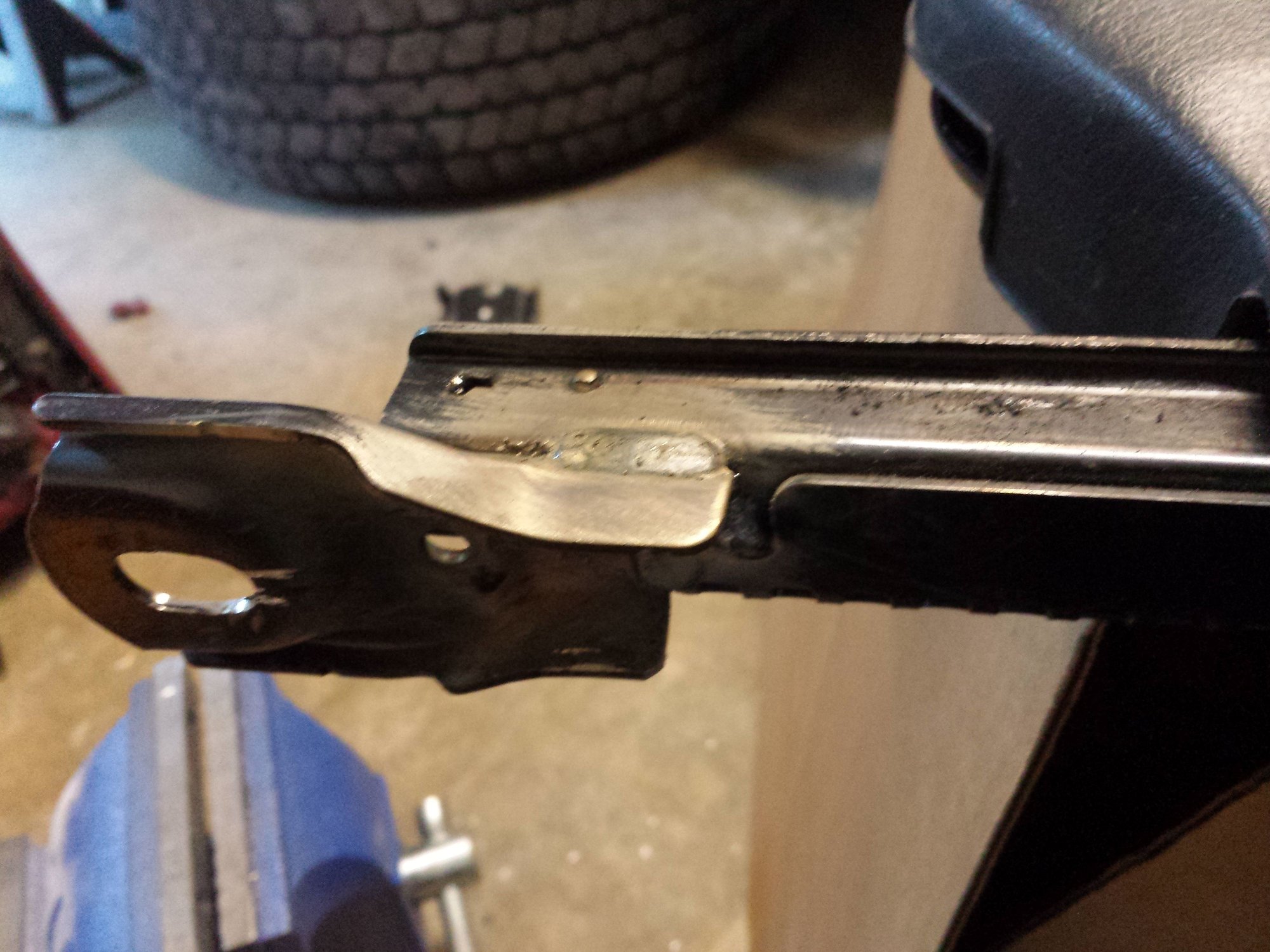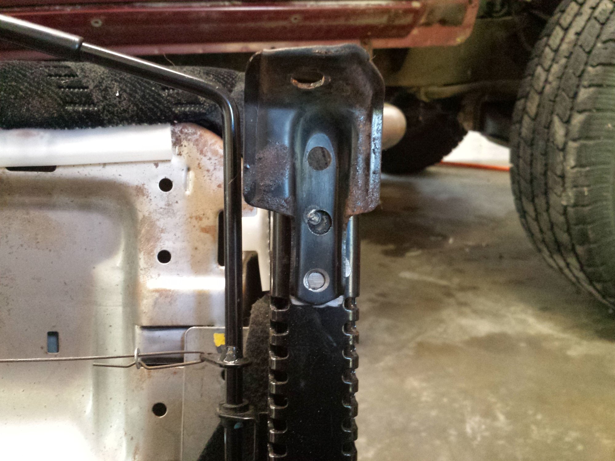 I once again left the outside front tab from the prelude and removed and swapped the inside front from the 4 runner. On the rear outside i found that the 4 runner chassis has two welded nuts and i was able to utilize the one further back, i still had to move the prelude tab forward a half inch to fit.