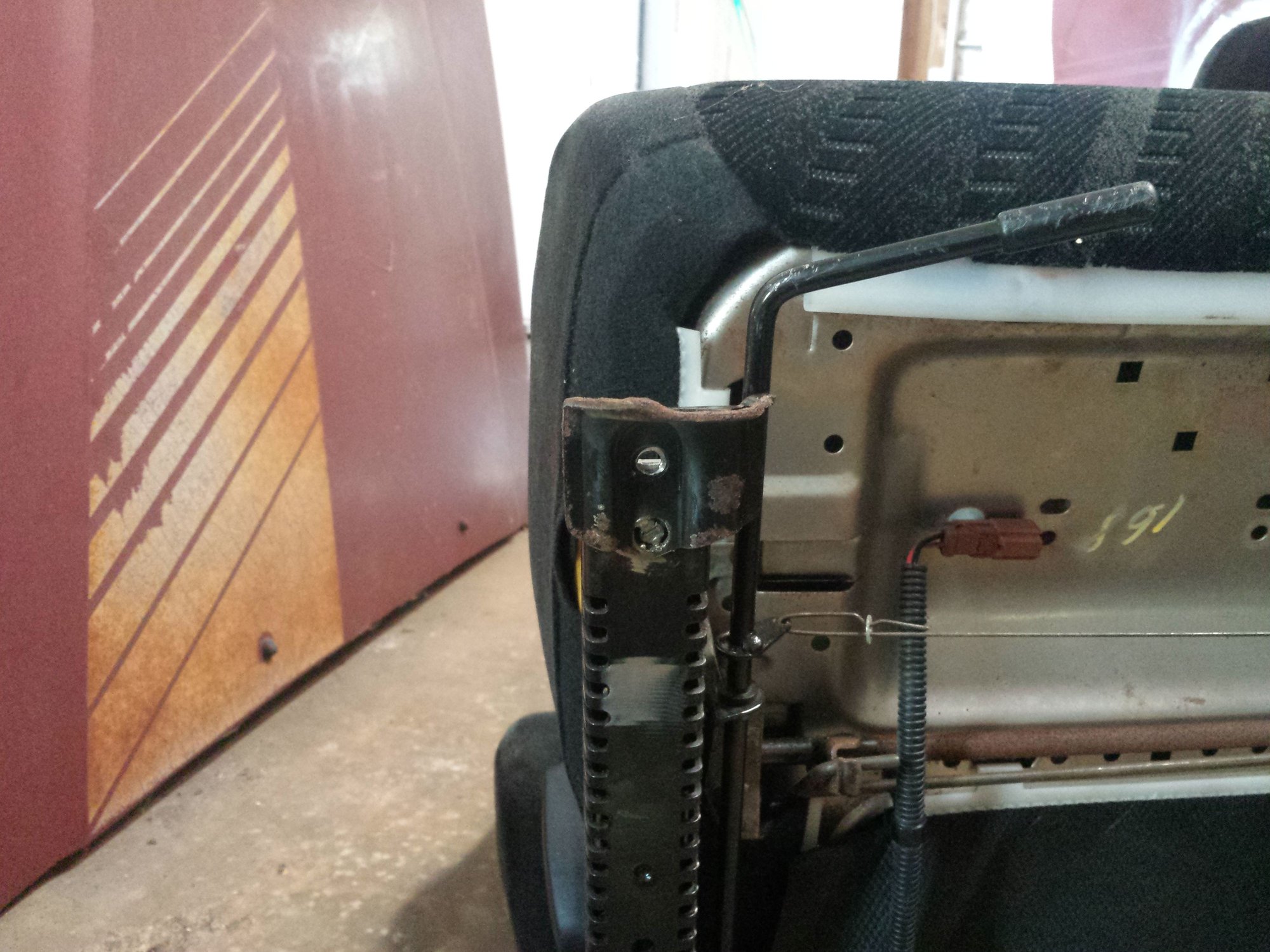 I did the drivers seat first. I left the outside front tab on the prelude seat as it was pretty close to prefect. I then drilled out the spot welds and rivets from both the 4runner seat and the prelude seat tabs and attached the stock seat tabs on the prelude seat. So the drivers seat bolts up to the factory location.