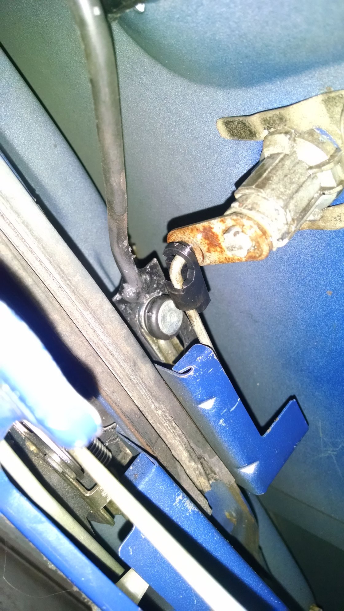 This has been the single most pain in the @$$ for me so far. Finding another one of these... I was told to check the junkyard by many folks so before I left, I took the panel off of my passenger side and checked it out. As far as i can tell, there is no way to get that rod out. U can disconnect it from the top by taking it out of that rod clip. But the bottom part seems like its in there permanently. U cant just slip it off and that striker looking thing doesn't come out. I actually talked to a buddy of mine that is a toyota tech and he said you have to buy the entire (door latch assembly) which is only 130.00!!!! on rock auto. Which is out of stock lol. Good thing it was cuz i would have bought it already and then kicked myself in the @$$ later. So this is what i came up with.
