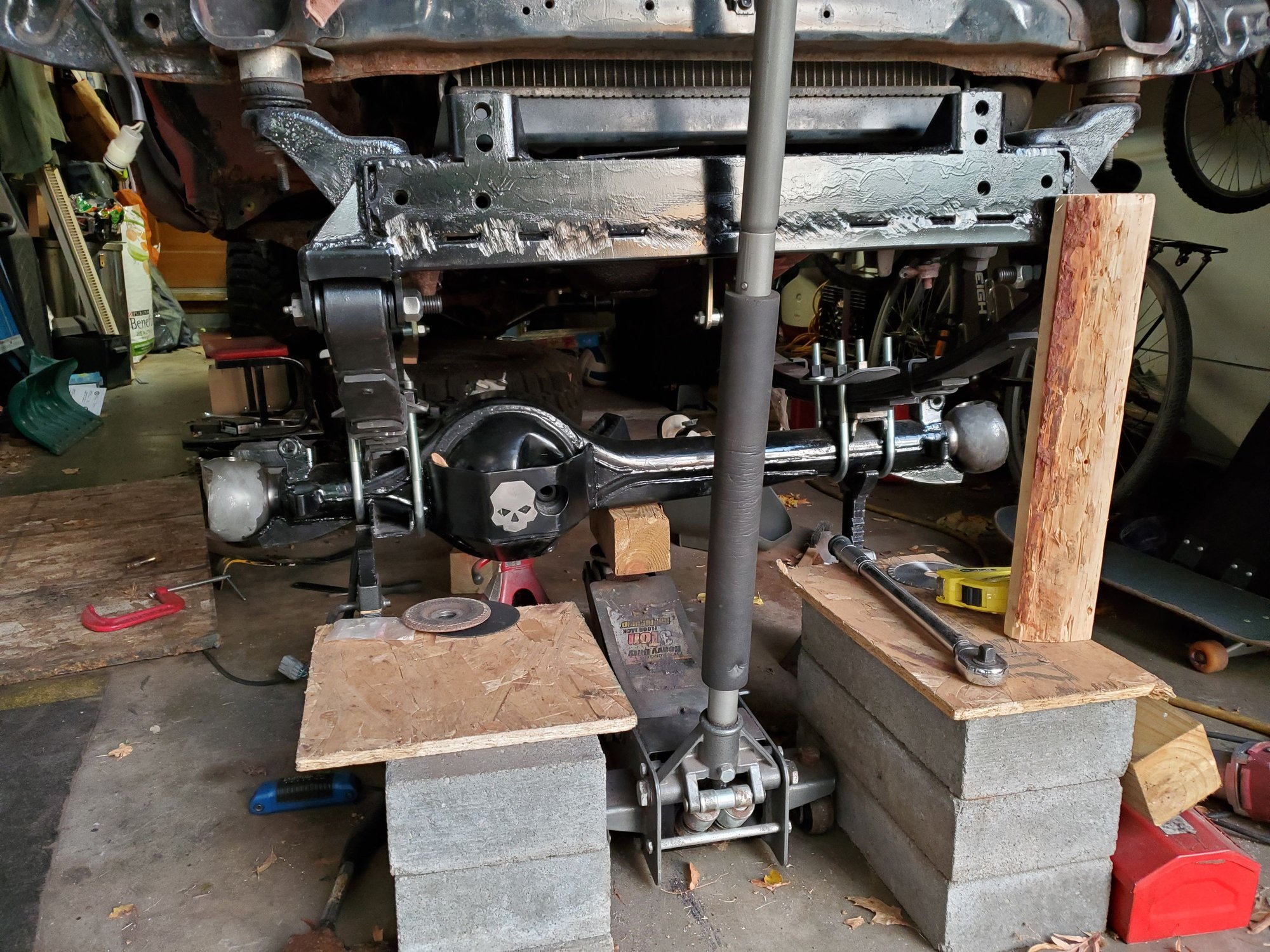 I'm currently searching for a way to flex the suspension out. I don't have a ramp or engine hoist... The truck isnt licensed so I cant go find a loading dock or ledge somewhere without possibly getting a ticket. I may have to risk it some night... gotta scout a good spot.