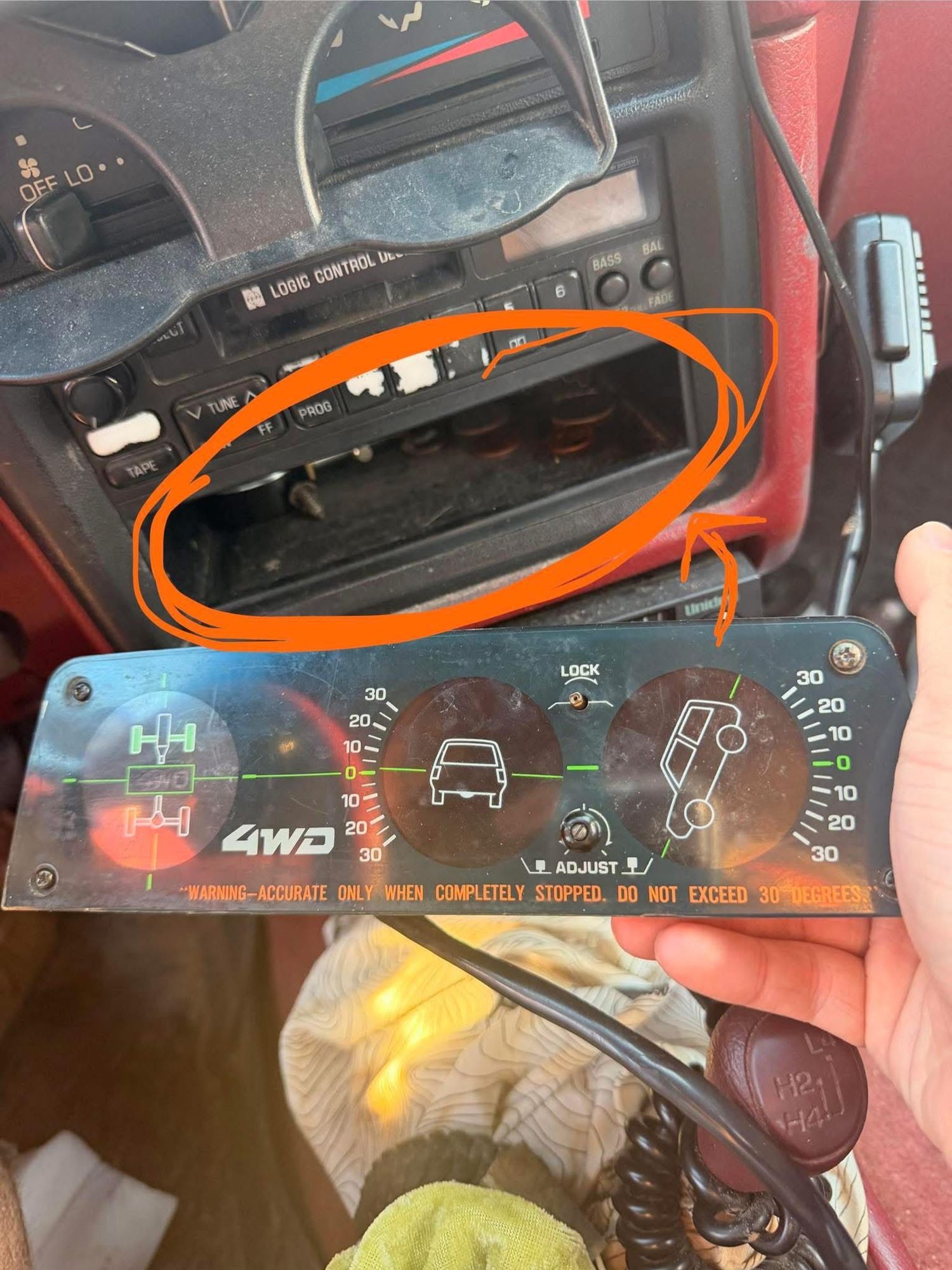 that looks extremely similar oh my god, except the one i vividly saw was that it was under the radio not on top but heck thats close man thanks, and yeah it was from a truck/4runner not a tercel, i was thinking maybe i can still fit it because i like how the 4WD lights up, but if there is a big size difference then perchance ill get the truck/4runner version