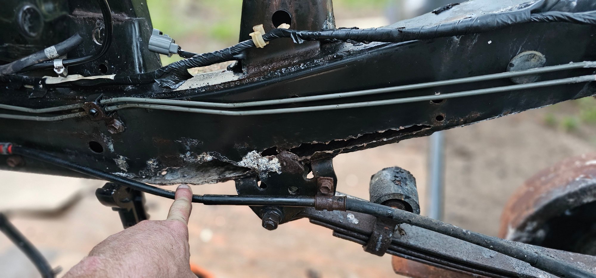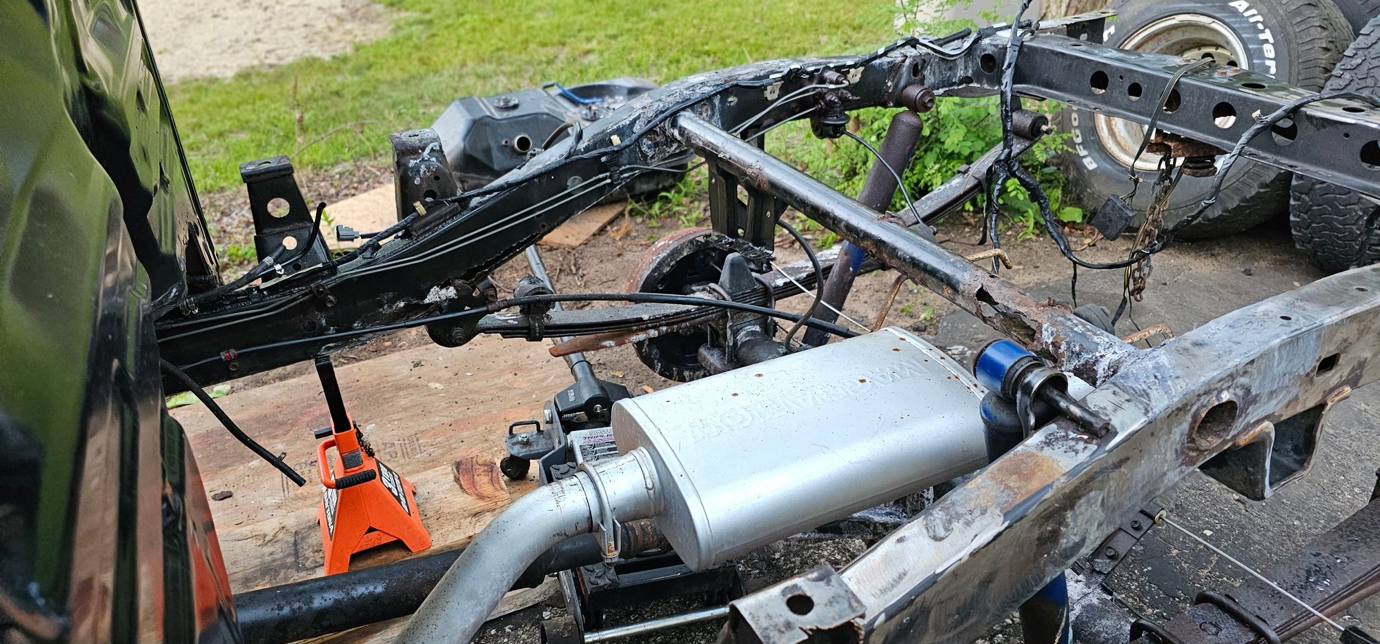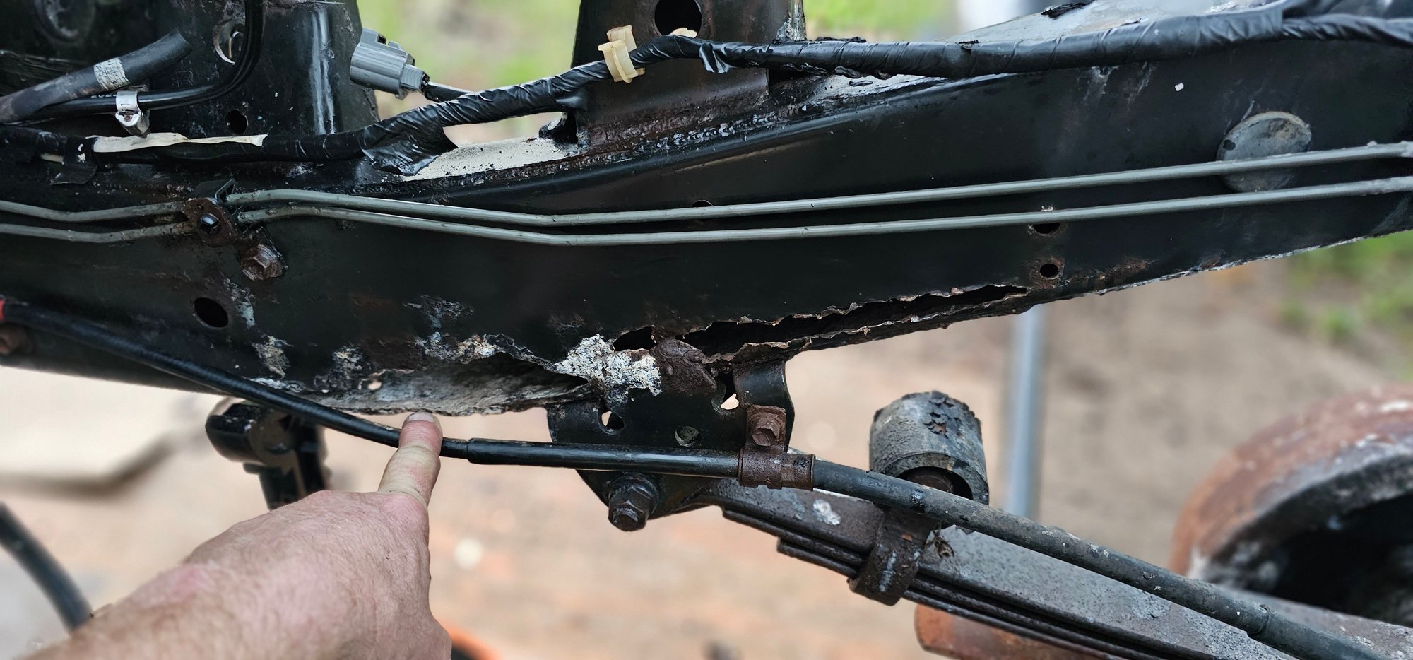 Truck sat for three years. after taking bed off and replacing fuel pump, I found this. The other side is solid. I did some welding years back, I know I can tackle this, thoughts and advice welcome. Croosmember needs some work also.