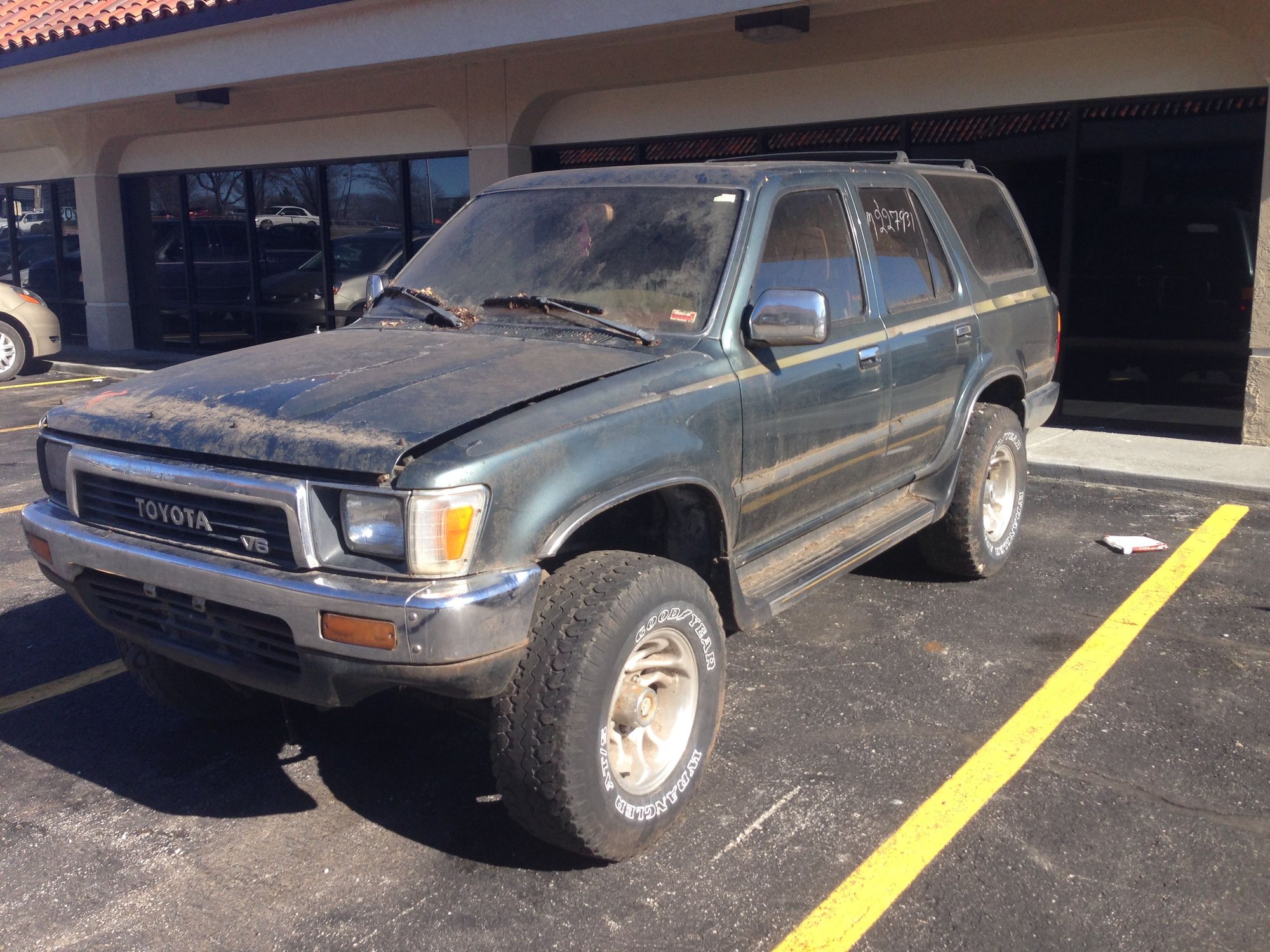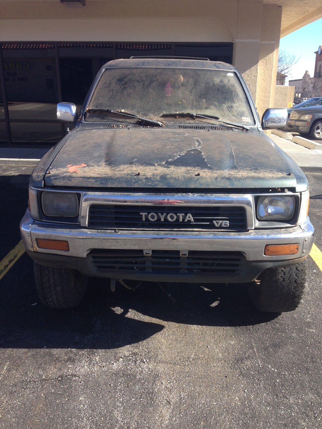 The maroon '91 I bought from an inspection shop an hour north of where I am now. I've always wanted an old 4Runner to turn into a mountain trek vehicle and I sold my beautiful 2012 Tacoma to buy this truck. I paid $2200 for the Red Raider and soon found out I couldn't get it to pass inspection due to the back frame rusted through at the springs and shocks.
