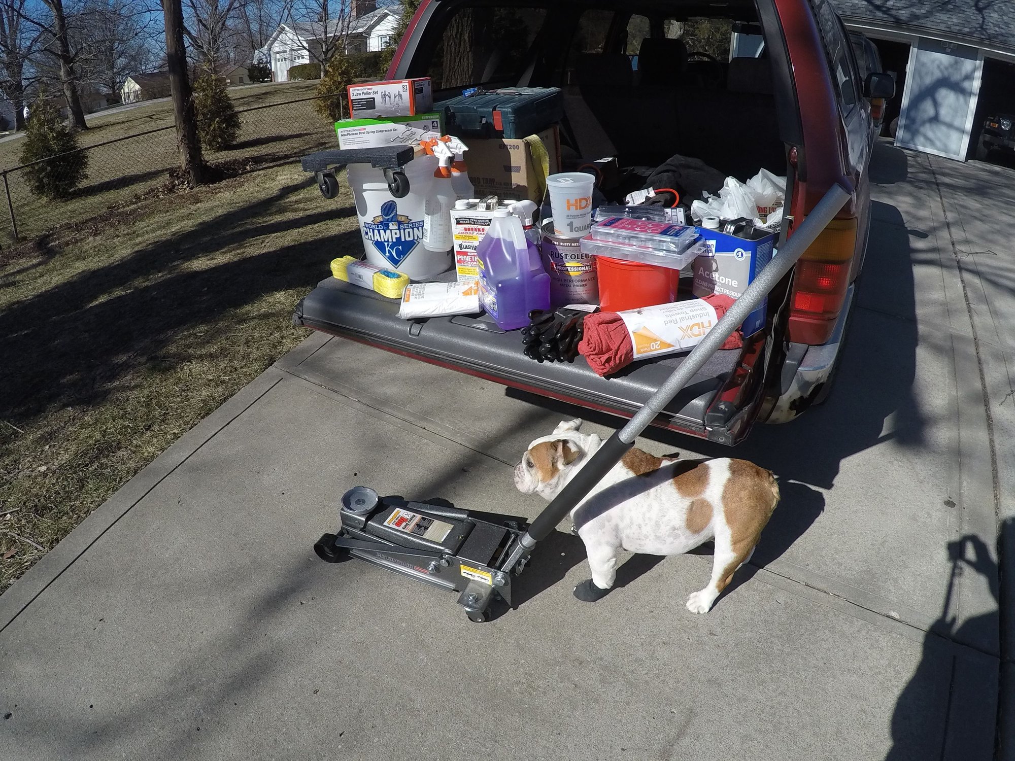 This week has been warm so I've been stripping Green Machine down to the bare bones. I've also received more boxes from Rock Auto than I care to recall, but if I'm going to have them apart I might as well replace things like the fuel pump, shocks, thermostat, etc. I have ordered every gasket available through Rock Auto and if I run into a few that weren't available I'm one block away from Autozone.