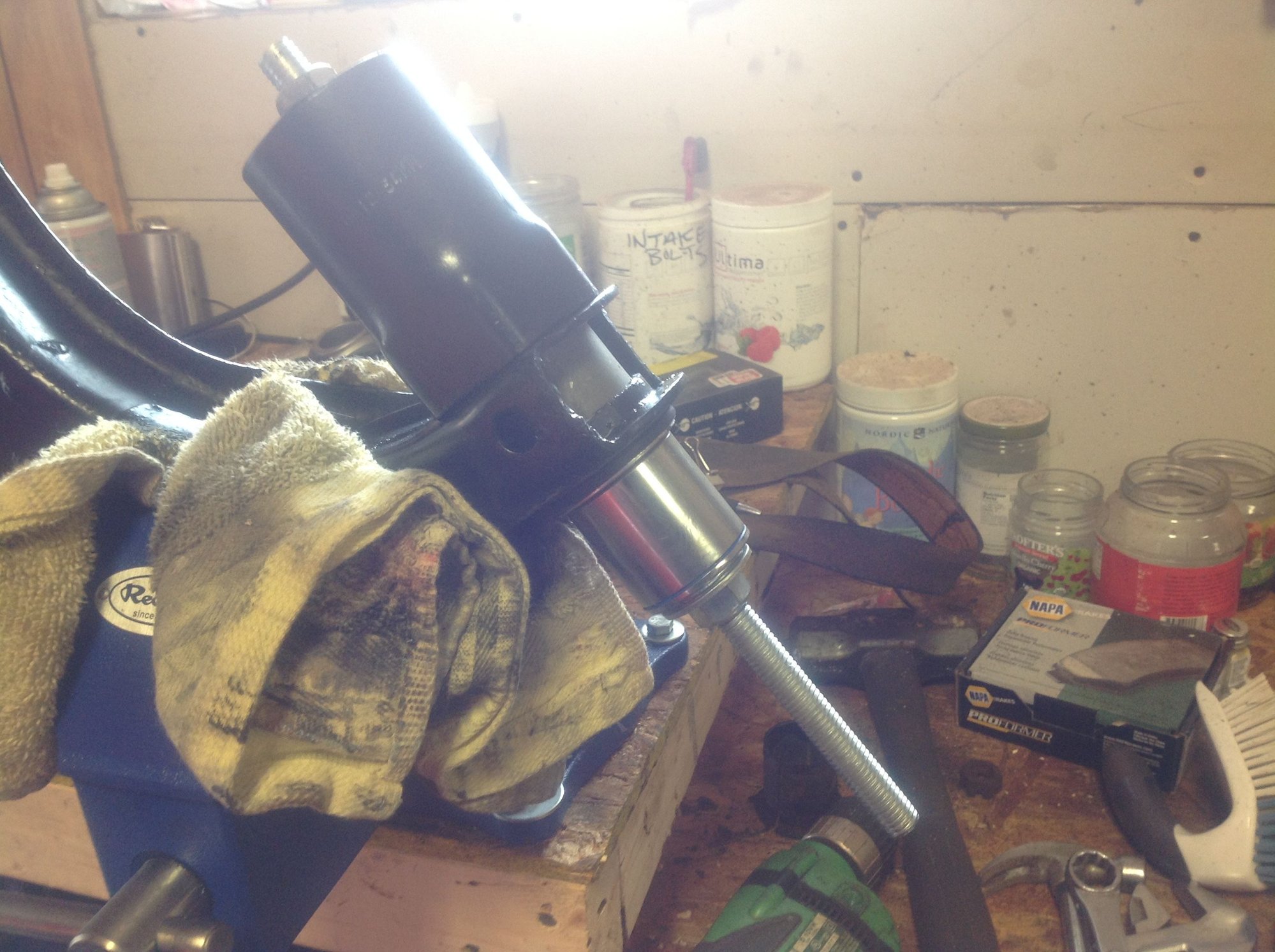 So I'm now back to the plan of replacing the control arms. I have my new bushings ready, the control arms are painted in POR-15, I have a fresh package of Lennox thick metal blades for the saws all- I believe I am ready. Unfortunately I ran out of time today as I have work this afternoon, but the next two days are fairly clear and I'm optomistic I'll get back on the road, fully aligned, soon enough.