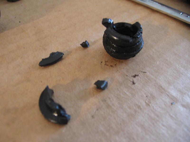 (what is left of the grommet that the pcv valve mounts into, this was no longer soft rubber it was rock hard.)