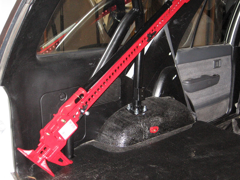 I happened to stop by a local farm supply store yesterday on Black Friday and they had them on sale, so I picked one up. I used 4Crawlers idea of mounting the jack to the roll cage but went a different route with the hardware to mount it. I used a long U-Bolt and then a plate from a 2" exhaust clamp. Cut off one side of the long U-Bolt and then screwed on a twist handle and it turned out awesome!