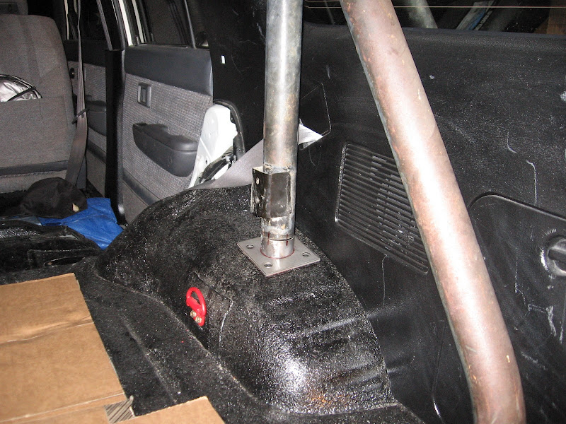 I have read a lot of threads that show the 1st gen roll bar being installed in 3rd gen 4Runners but no installs into a 2nd gen, the 2nd gen is a little more tricky because the passenger side wheel well is shaped different than the drivers side wheel well because of the fuel filler neck. This caused me to have the mount the legs of the roll bar farther back to the rear of the rig. The only problem with this is finding a flat spot for the rear legs to mount to.
