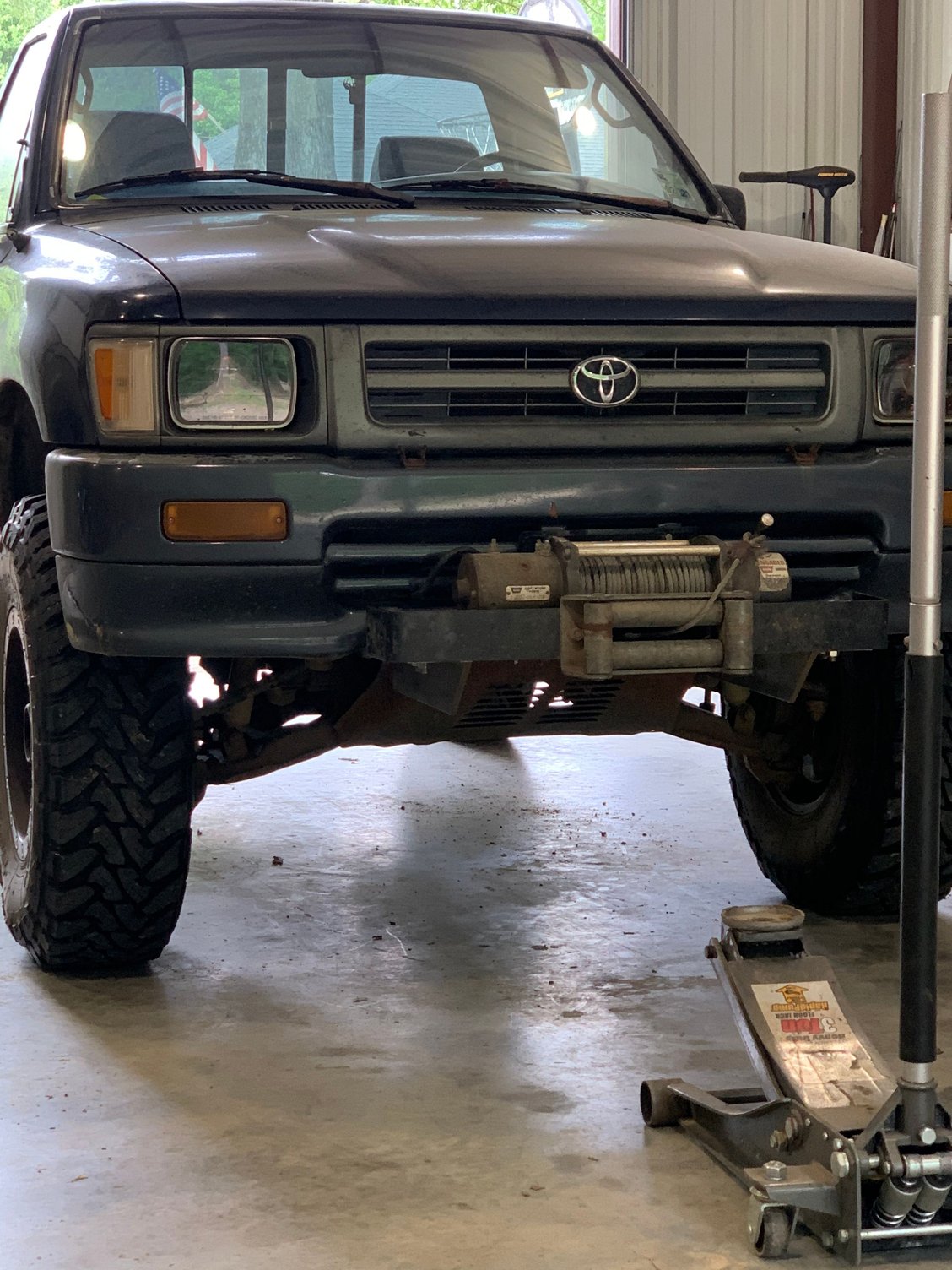 Rear springs were not up to the task of hauling the boat, so i picked up some OME cs019r to help out, crazy ole std cab rear end i had to make it work. Made a bushing for the perch alignment hole.