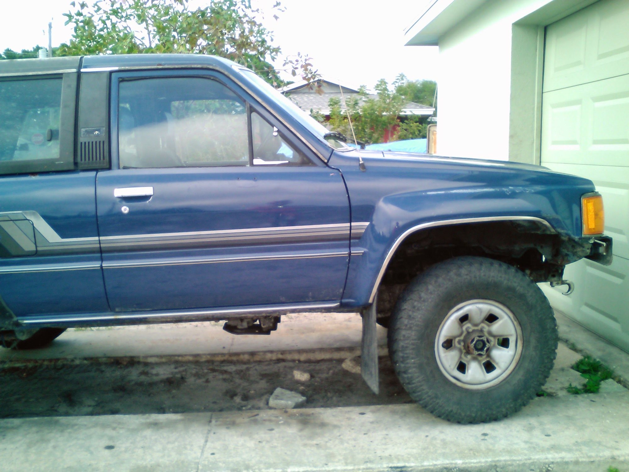 Hey. New here but felt like starting threads for my two trucks (86 4runner 334k 22re a340h and 95 2wd t100 254k 2.7l manual) I got the 86 from a friend for $800 needed a water pump. After about a month, timing chain cut a hole into the water jacket ( also when I joined yotatech ). After head gasket, all the top end gaskets, fix the timing chain cover, new timing chain and gears, and oil pump it ran like a top. Until 2/5 when I got hit on 95( ended up losing traction ) cut a rad hose and bent tie rod (and knocked a bunch of junk out a place. Knock started and finally killed itself about 2 weeks later. Now the yota sits in my driveway and I drive the t100 Plans for the 86: bumpers, sliders, 3-5" lift 33" gy duratracs, lockers, full paintjob (Inc engine bay and engine), half top mod for getting a tiny bit of a bed back, gm 3 wire alternator conversion, winch(which I have), full front end rebuild including poly bushings, rebuilt 22re (I have aa rebuilt 81-82 block 22r with a rebuilt head for converting to 22re (which it had stock) rhino lined floorboards and some kind of speaker set up.