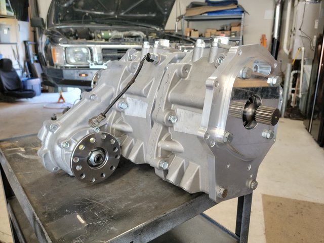Cleaned up the trans to t-case adaptor and got it installed on the cases.