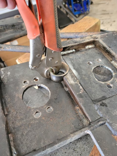 Then I set myself to modifying the cross member. Originally there wasn't a spot to access the crawl box's drain plug. Mainly because it was right above the 1" square tubing that was the backbone. With some careful measuring, I figured I could save one side of the tubing and out came the hole saw.
