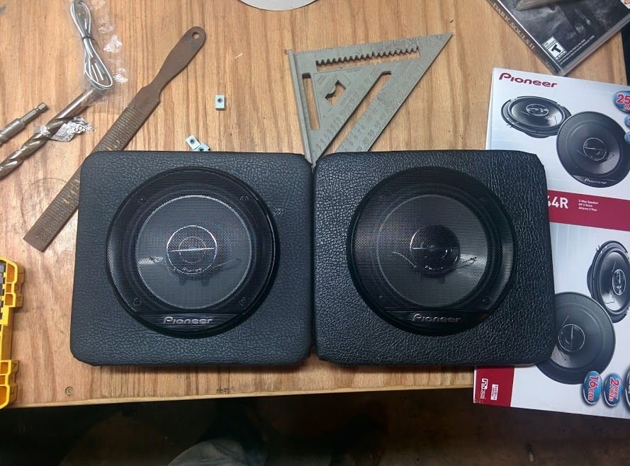 Mounted them in 1/2" ply and covered them with some vinyl from an old bench press pad. I'll wait to install them when my CB comes in so I dont have to take my dash apart twice...