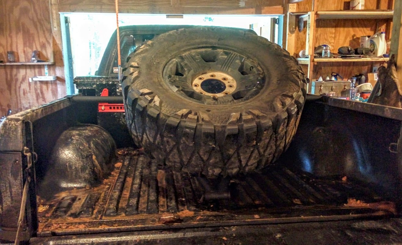 Also just about finished with the spare tire carrier. I just have a test tire in there now until I see if its going to be strong enough to support the weight and I figure out how to secure it.