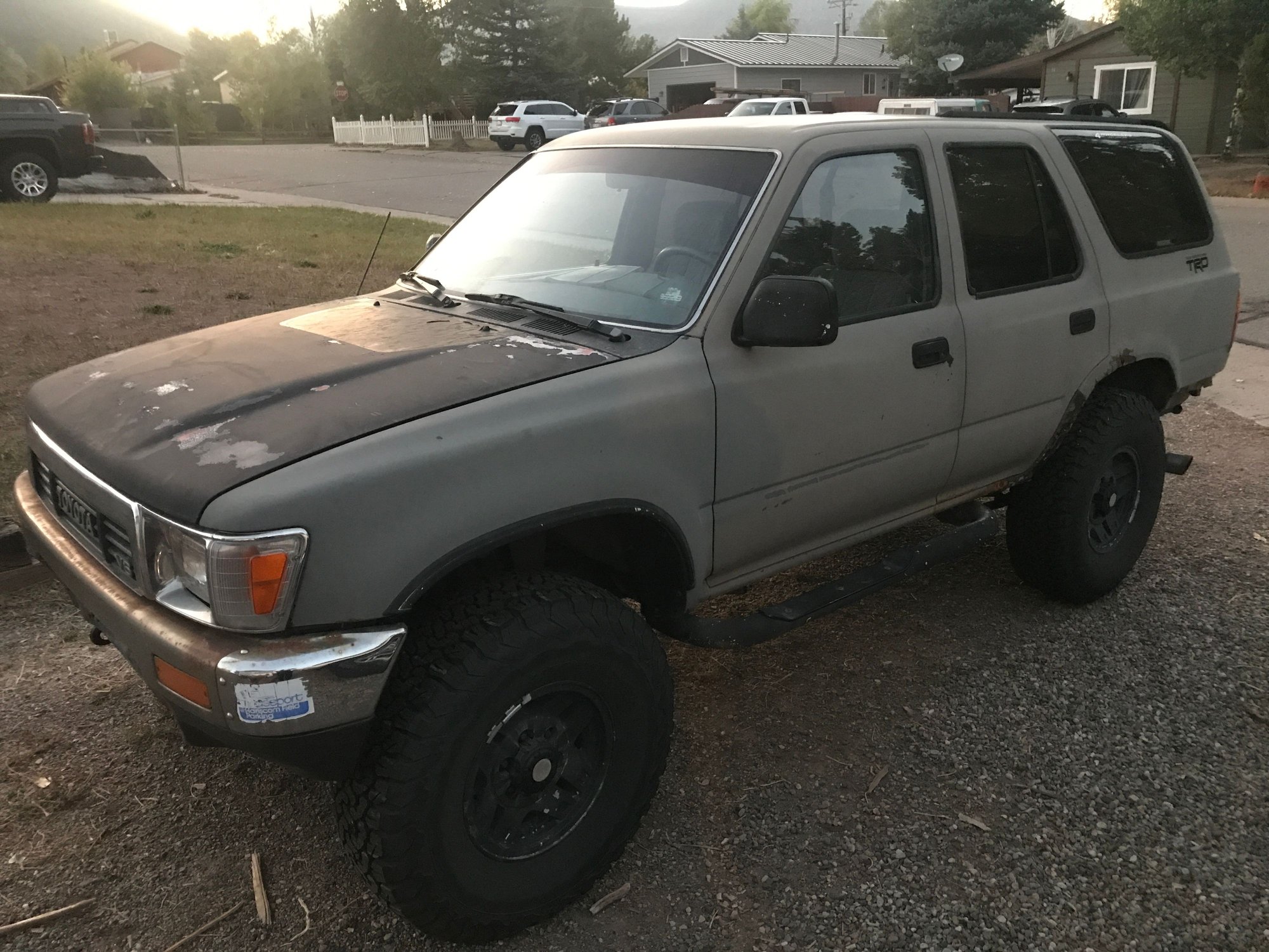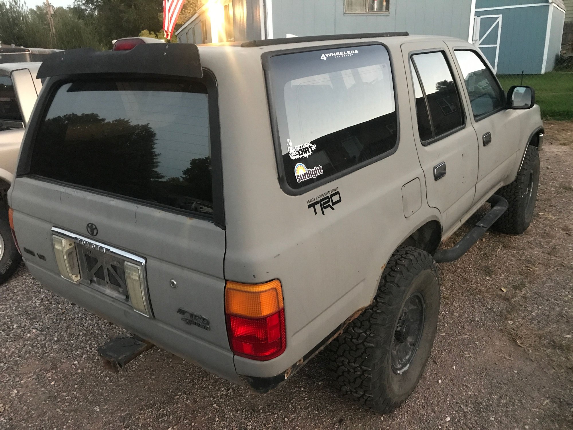 1995 SR5 4 Runner, 3.0 with a blown head gasket. Auto trans, 165,000 original miles. The guy just put on BRAND NEW 33" BFGs and a matching spare. The tires alone are worth more than I paid, I just couldn't pass it up.