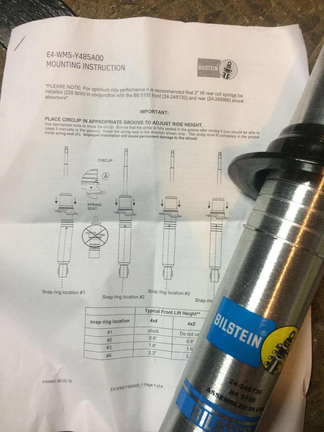 Well that combination of parts worked, didn't use the Bilstein bushing though as the KYB cushion was pressed in place, and on snap ring location #4 I gained a full 3" of lift or more on my old 99 tall coils with 250,000Km on them after setting it back on the ground and tightening the upper control arm and lower shock bolts static bushings, BEFORE alignment, so I will have to install a 1" diff drop now, not sure where Bilstein gets there lift height numbers from, I assumed I would get MAX 2.3" of lift as most exaggerate "typical lift height". So with the rear on 24-249966 and OME 906, my front fender is a full inch higher than the rear, hoping the bushings will settle down a bit after some abuse and alignment, it looks good at the window lines, but now I am considering a 1" rear coil spacer from a 80 series Land cruiser to level out the fender gaps. So in conclusion if anyone is going to try this combination, snap ring setting #3 would be perfect with 99' tall coils, if my spring compressor wasn't trashed after compressing the hell out of the front driver coil I'd probably redo it on #3 setting. I'll let everyone know if it settles/levels out after alignment and some time, if not I'll be adding the 1" rear spacer and will update with a pic. right now at the front I'm 23" from hub centre to fender lip in the front (24" with 1" BL)